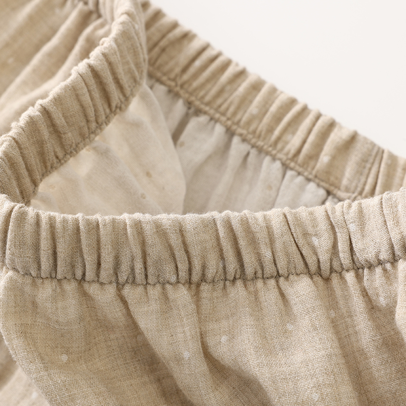 伊嫚家居 2025新款日式无印风良品全棉双层纱睡衣女纯棉短袖短裤睡衣夏季纯棉短袖家居服 米色波点女