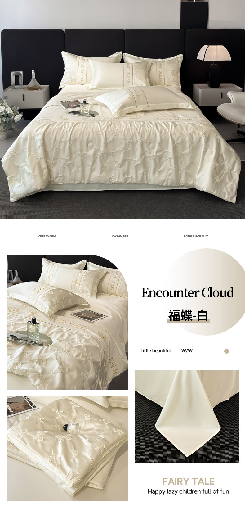 金阳光家纺 2025新款金丝提花浮雕水洗天丝夏被四件套 福蝶-白
