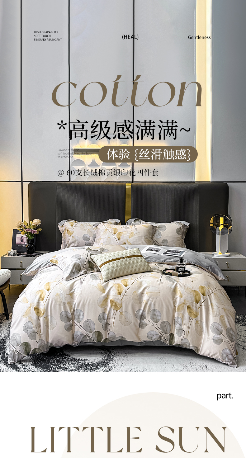 红日子纺织品 2025新款60s长绒棉纯棉贡缎印花四件套 颜若-灰