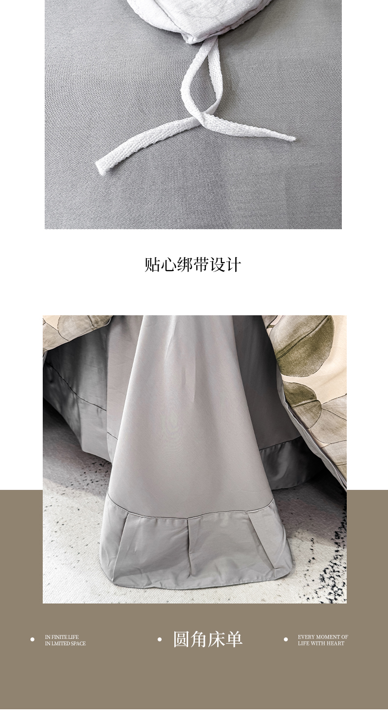 商品名称:红日子纺织品 2025新款60s长绒棉纯棉贡缎印花四件套 颜若-灰