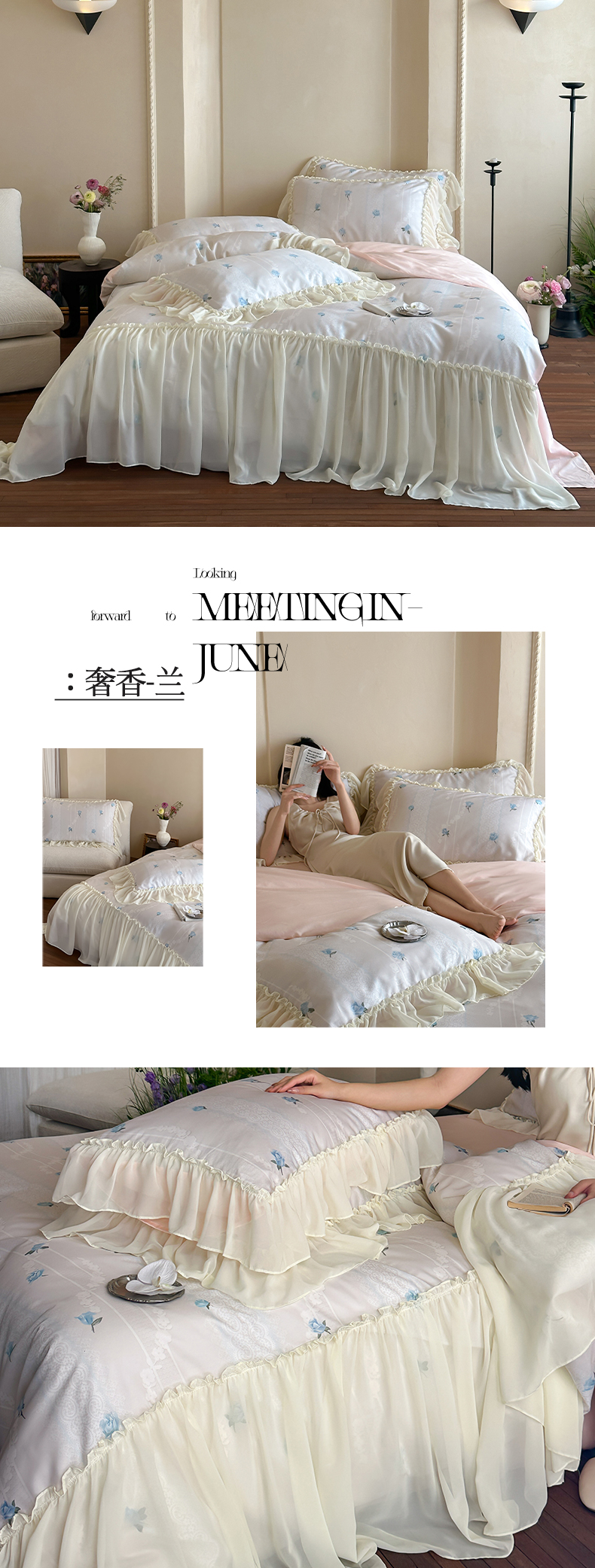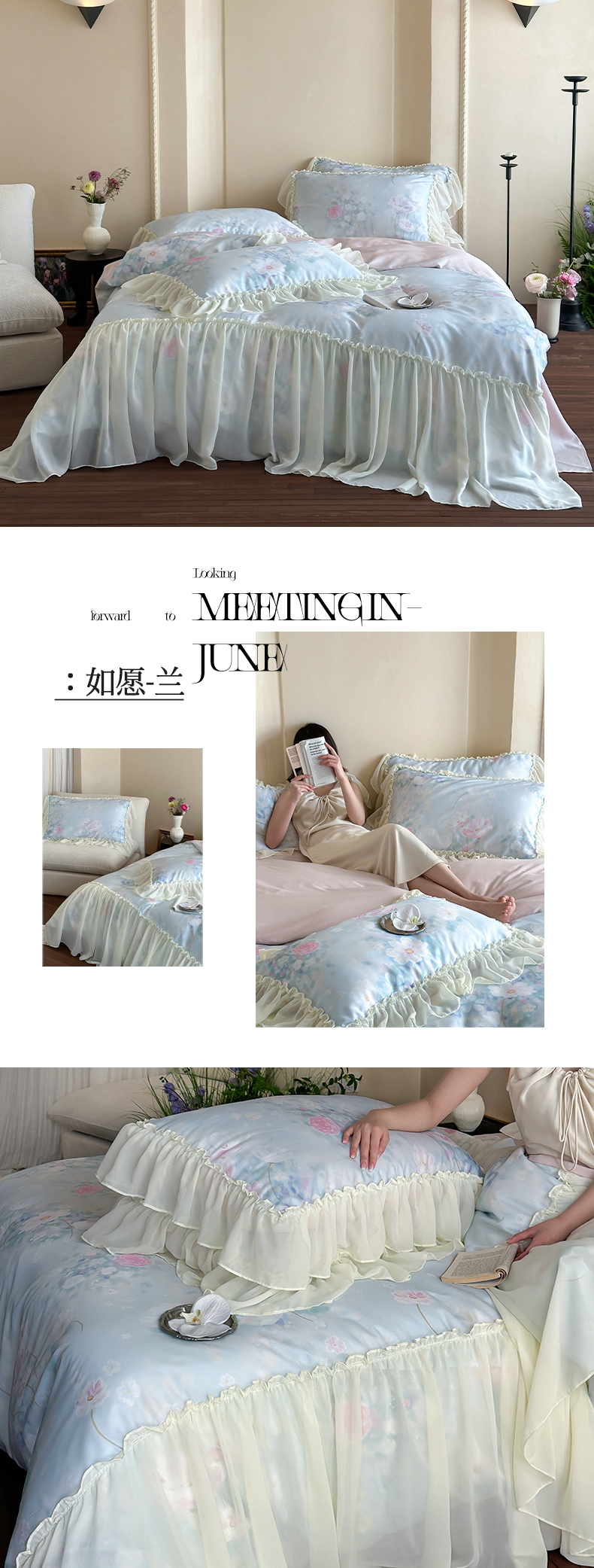 (总)卡巴伦家纺 2025新款天丝四件套-法式闺房风雪纺花边款【不得低于(店铺折后/券后) 标准:249元】,赫本,清风玉露,如愿-粉,如愿-兰,奢香-粉,奢香-兰
