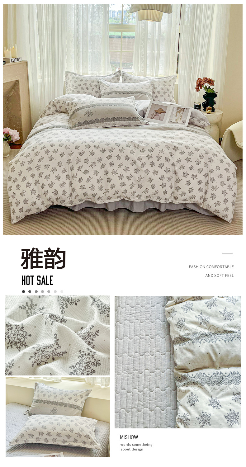 商品名称:2026春夏新款拼色提花双层纱古法水洗床盖四件套提花云感棉 雅韵