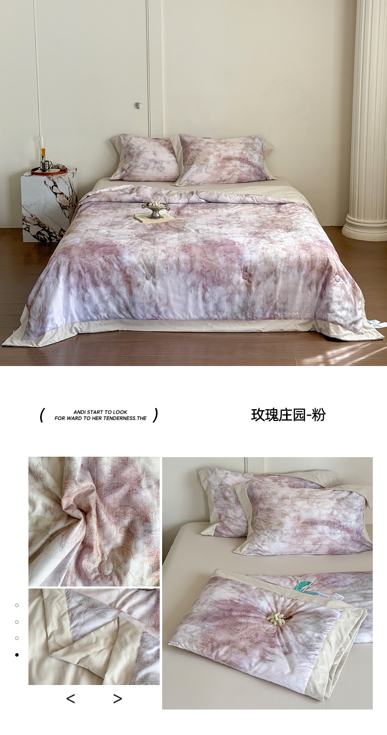 商品名称:亿莱鑫 2025新款7A抗菌超软柔肤棉轻奢床裙款夏凉被 空调被 被子夏被四件套-蝶恋花系列 玫瑰庄园-粉