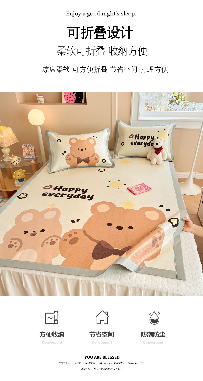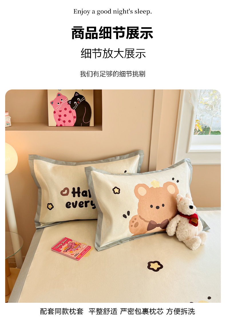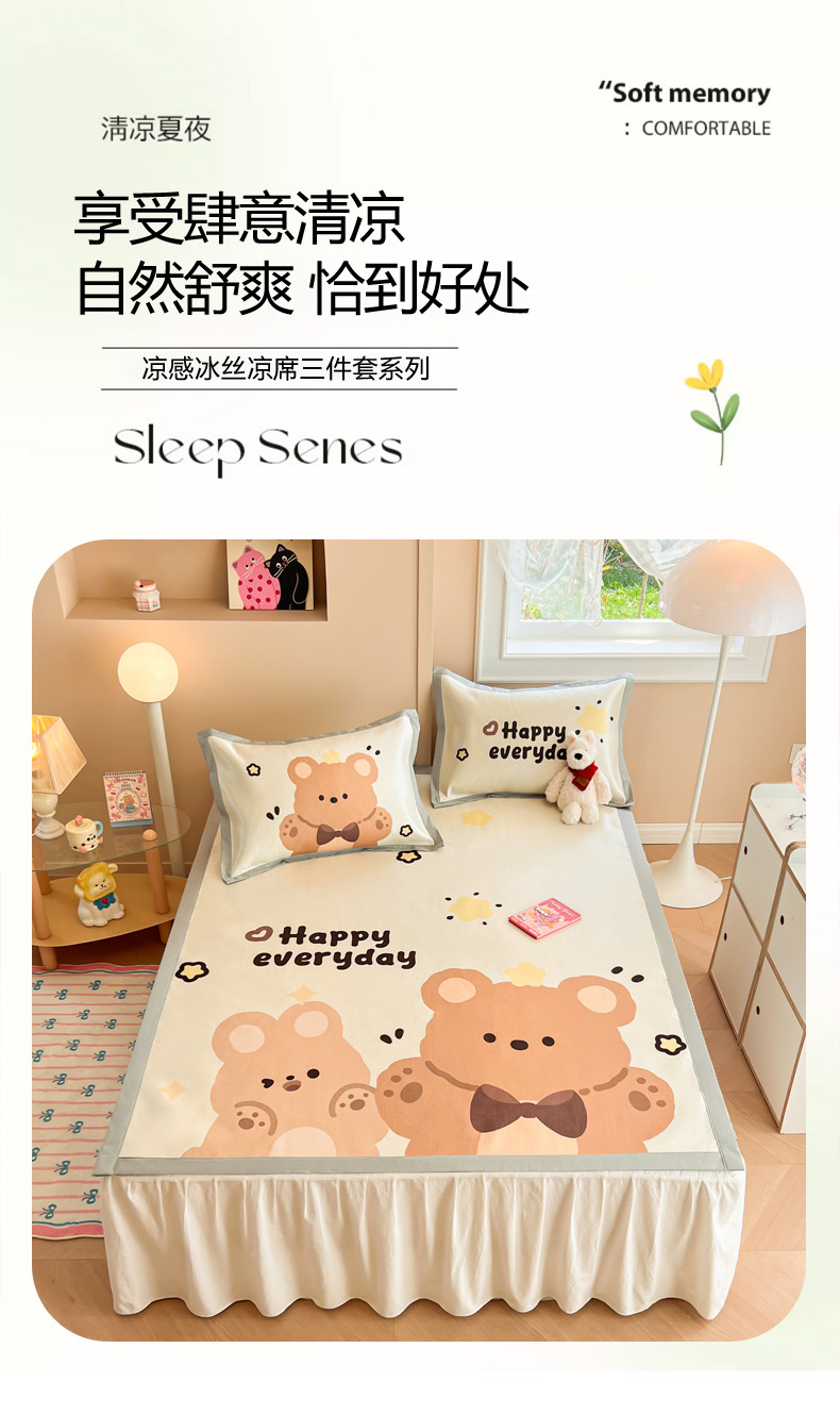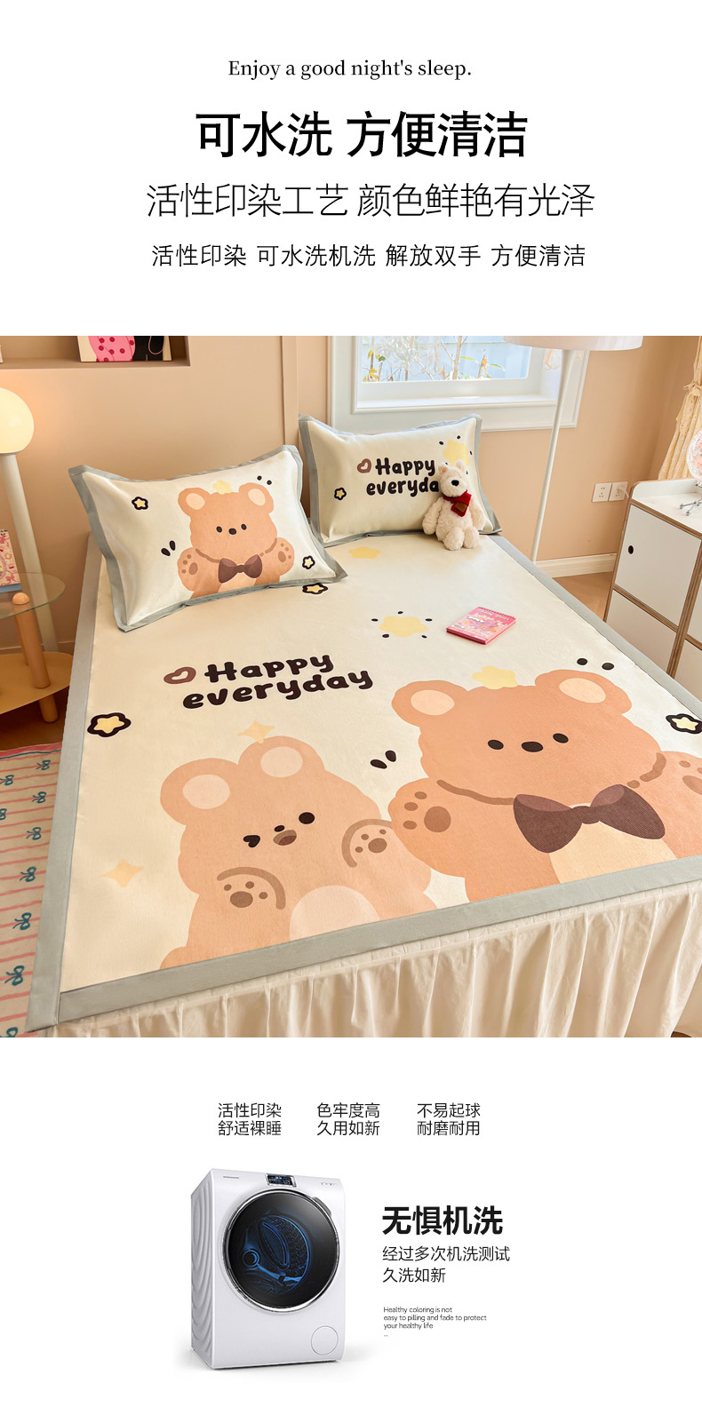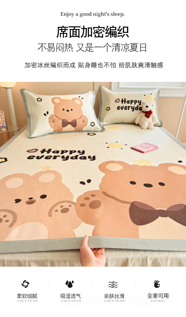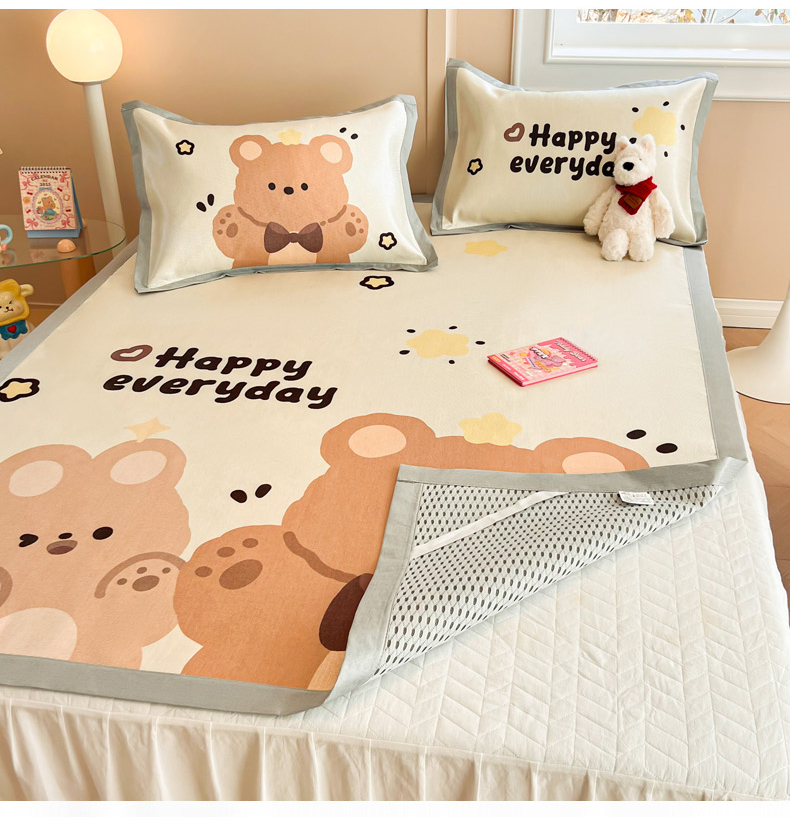 慕尚家纺 2025新款凉感大版冰丝席学生季款三件套 小熊泡
