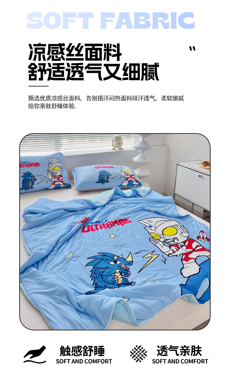 (总)蘭菲家纺 2025新款凉感丝奥特曼印花夏被,棒球队,抱团,超人兄弟,成功,出击,独行者,飞天,冠军,归来,科学家,闪电,上学,随影,太空游,王者,无敌,小虎队,勇士,宇宙飞人,运动员,正义之侠,追风