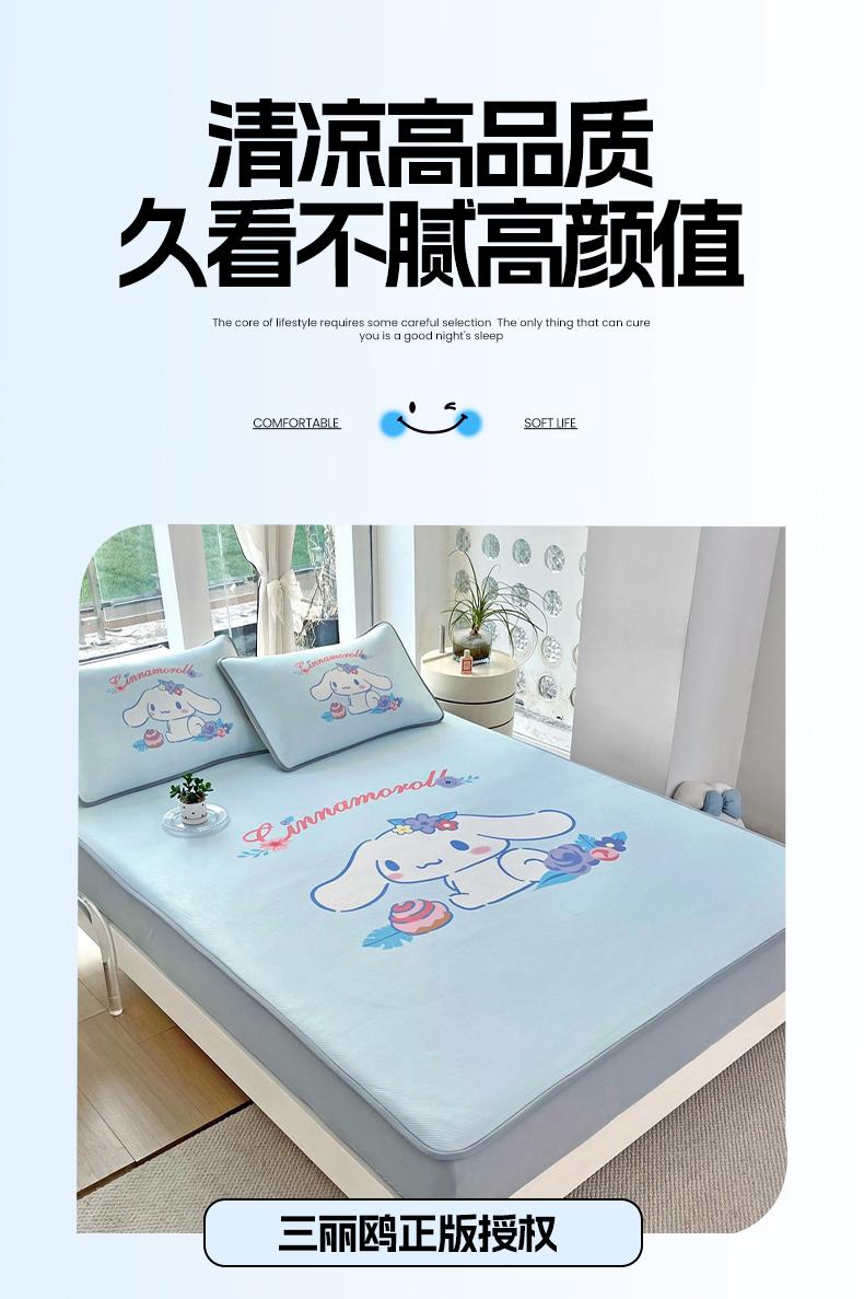 当前位置: 91家纺网 > 商品网购 > 床上用品 > 凉席 > 其他凉席 > 蘭菲家纺 2025新款三丽鸥卡通印花冰丝凉席 泡芙