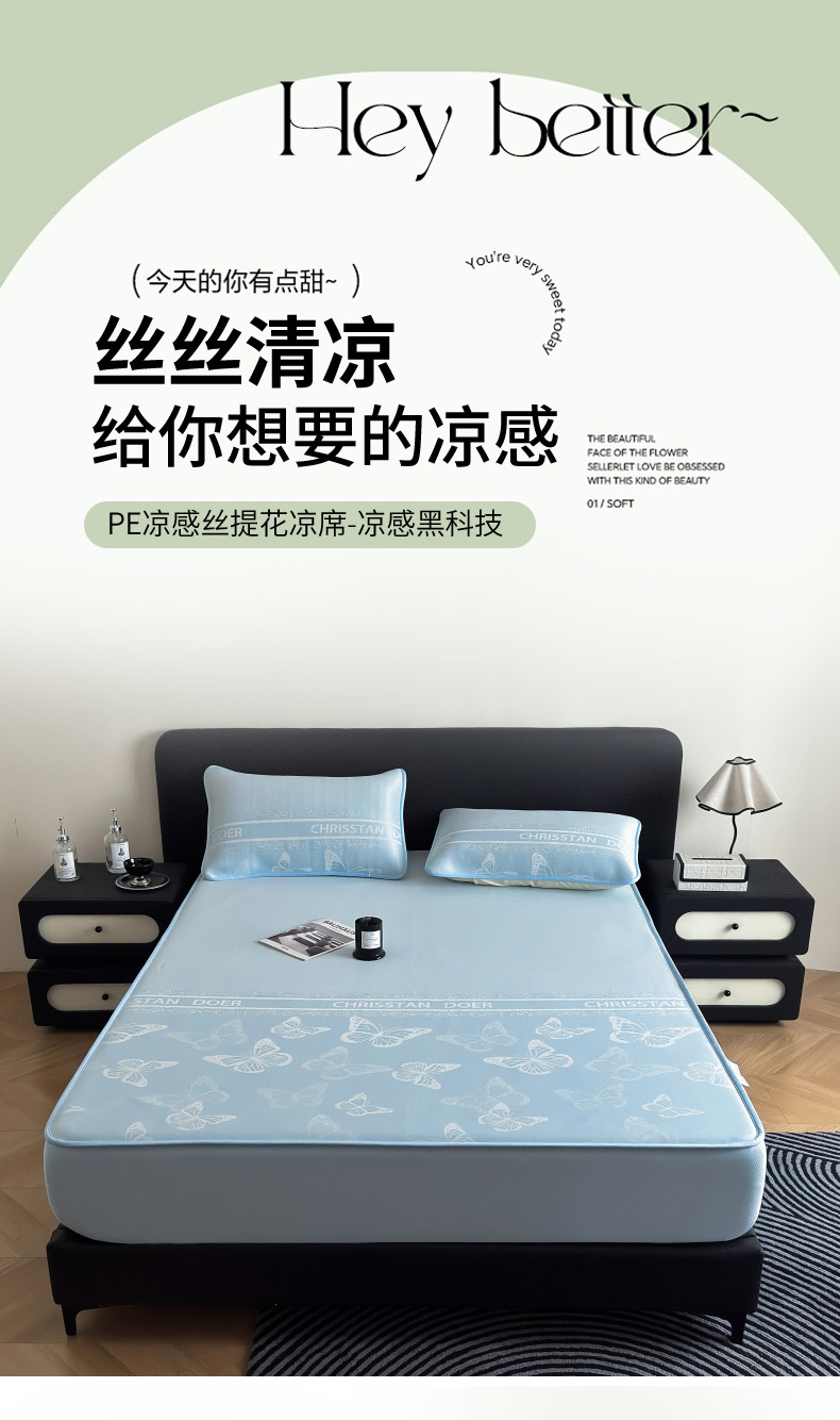 商品名称:九花鹿 2025新款A类PE凉感提花床笠款冰丝凉席软凉席可机洗可水洗 花梦(绅士灰)