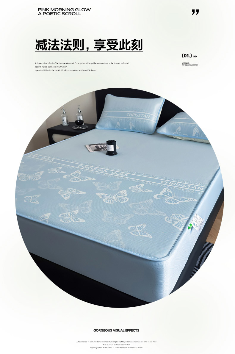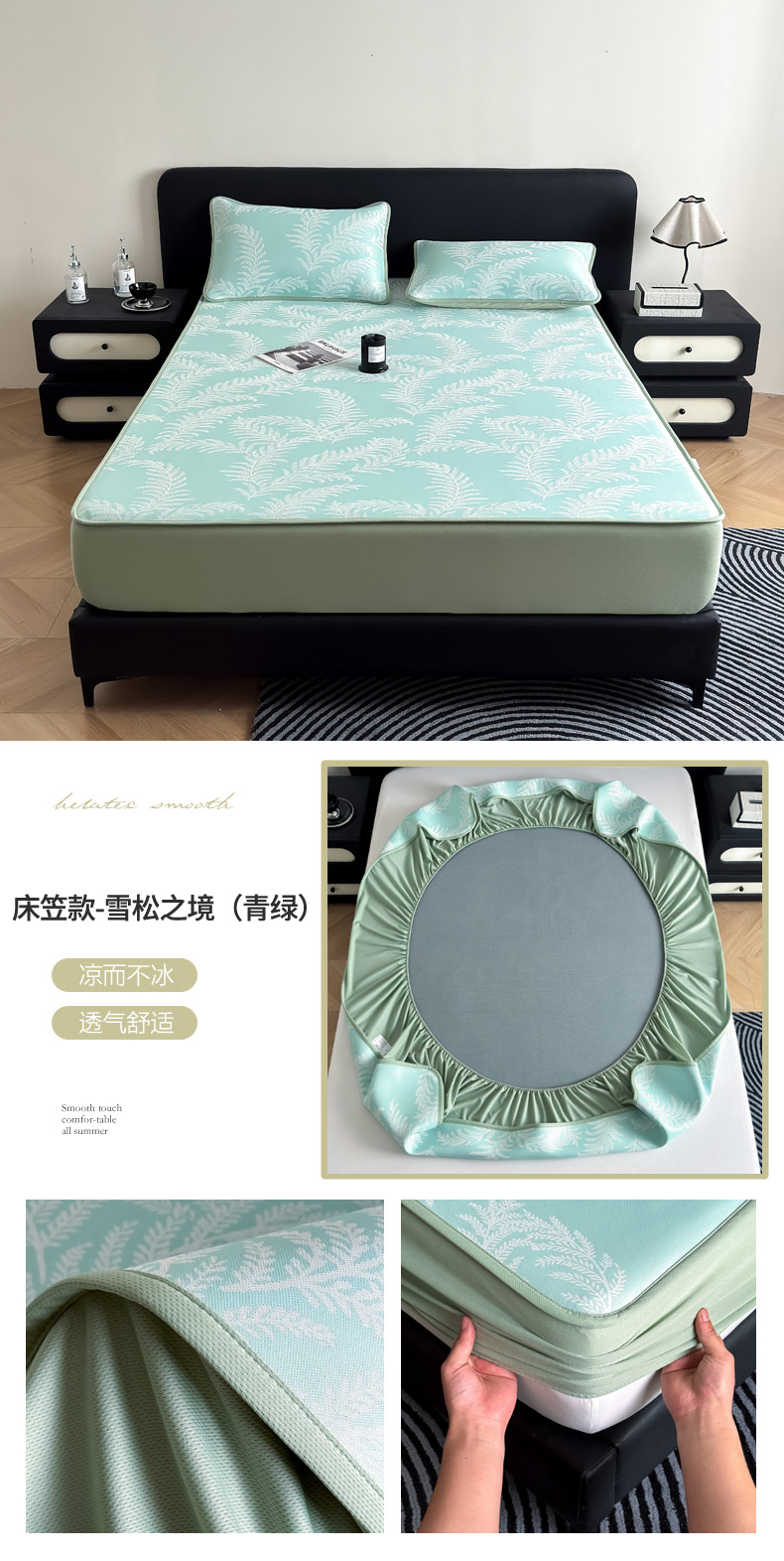 九花鹿2024新款A类大版碳光冰丝凉席床笠款三件套四件套,大版床笠款-漂亮女孩