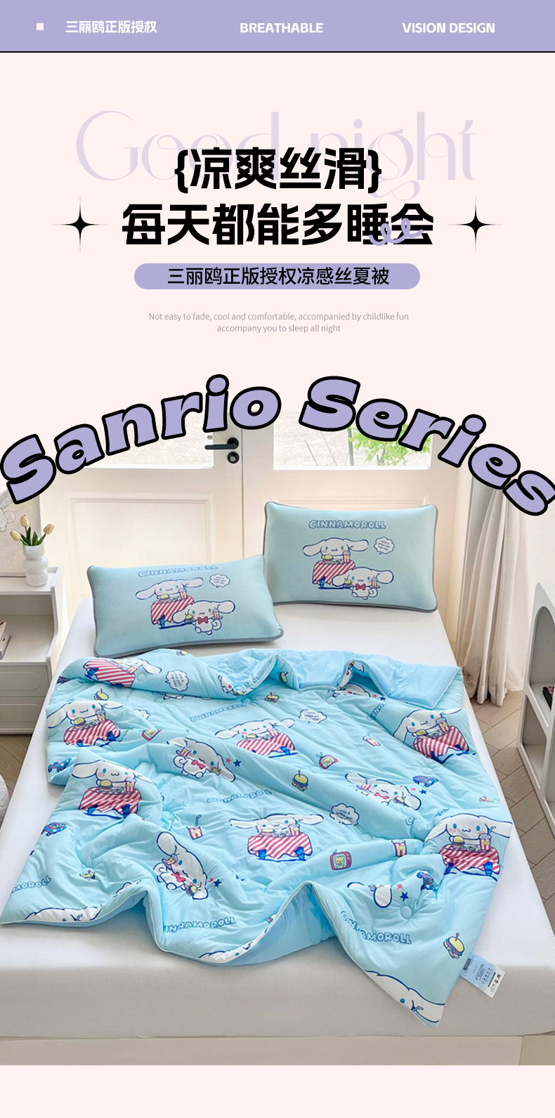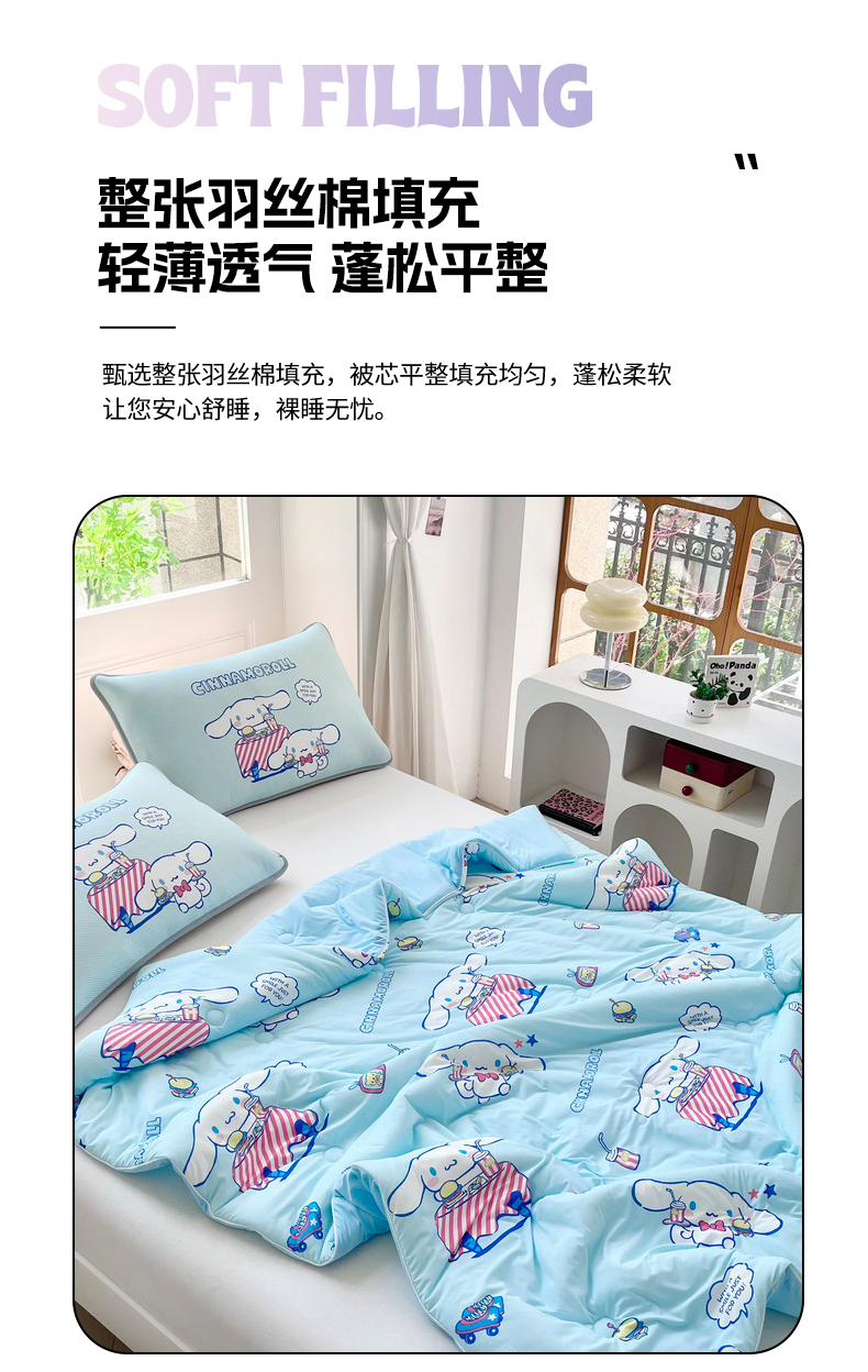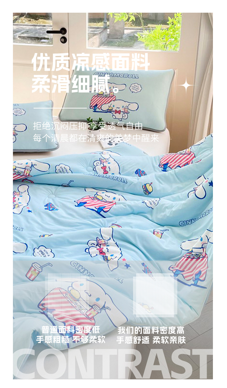 • 91家纺网 家纺一手货源 找家纺 蘭菲家纺 2025新款三丽鸥卡通印花夏被 聚餐小版