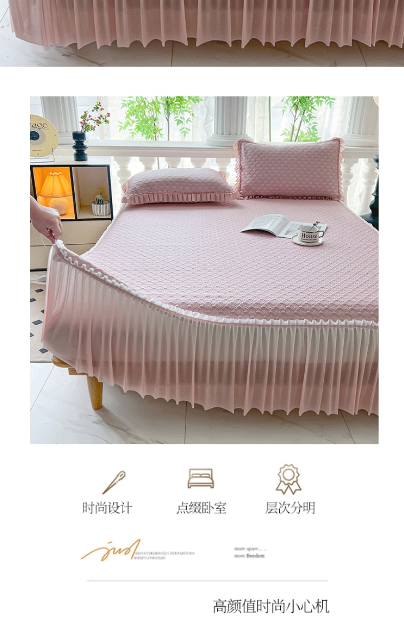 商品名称:乐居家纺 2025新款凉感凉豆豆凉席冰豆豆床裙系列 宾利蓝