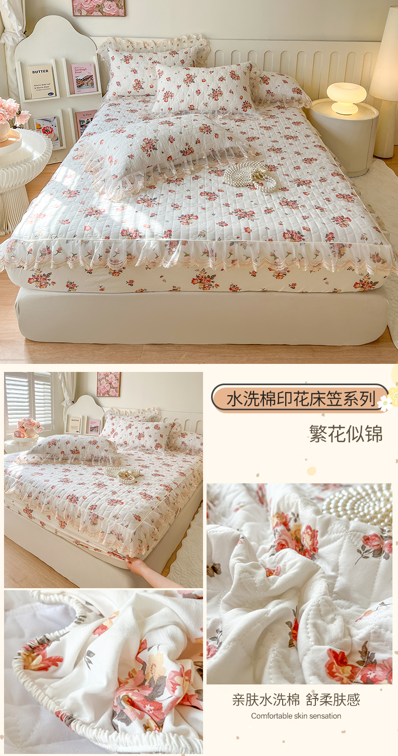 (总)麒豆豆 2025新款全棉蕾丝边床裙款床笠-晨暮花间,晨暮花间-绯红,晨暮花间-粉色,晨暮花间-麦绿,晨暮花间-米色,晨暮花间-浅紫,晨暮花间-雾蓝
