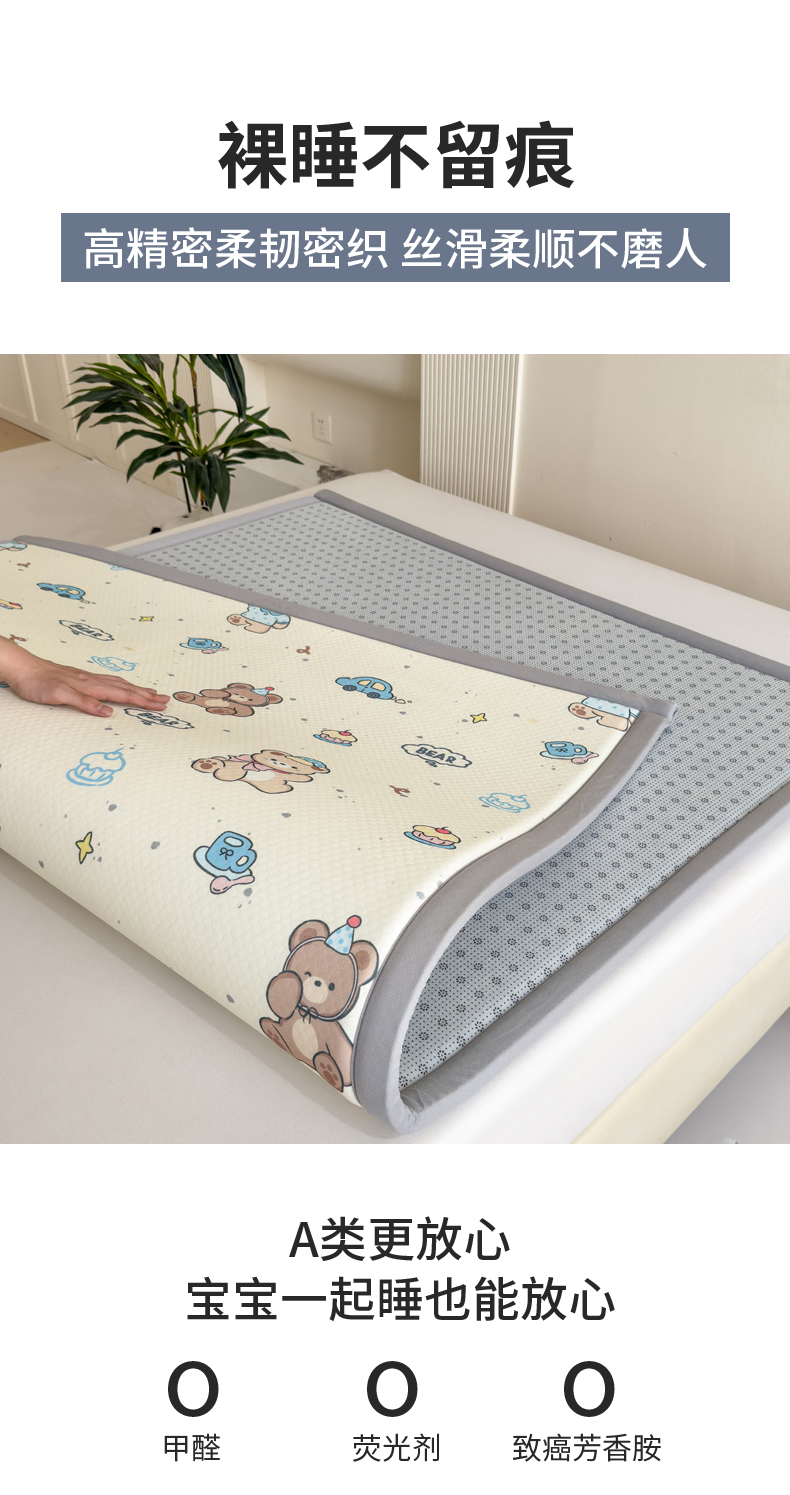 (总)席世家 2025新款A类凉感冰豆豆凉席-花卉卡通系列,呆萌熊猫,绿意,萌兔,小熊-粉,小熊-蓝,花漾