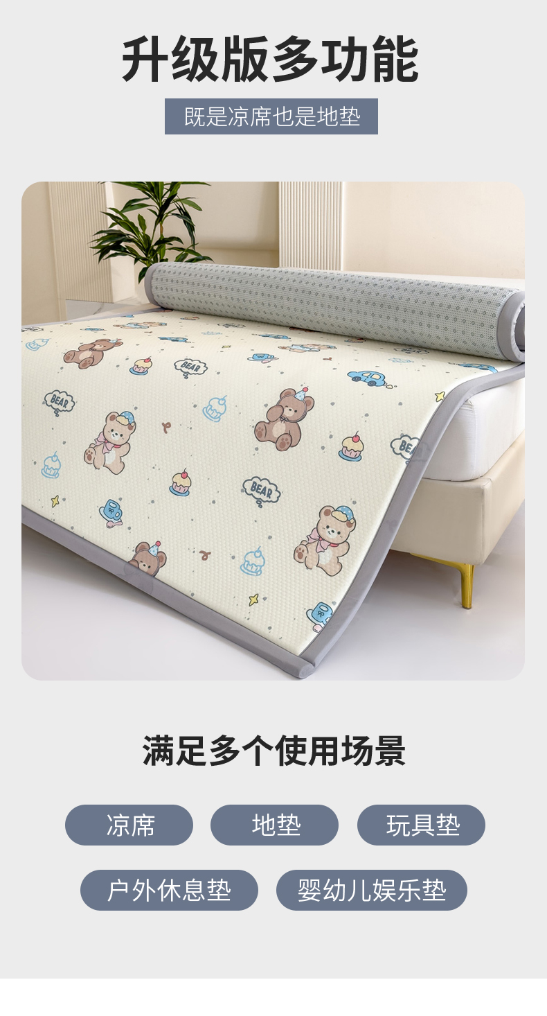 (总)席世家 2025新款凉感豆豆多功能地垫凉席垫,波洛格-粉,波洛格-灰,波洛格-蓝,波洛格-米,小熊-粉,小熊-蓝