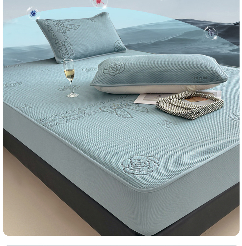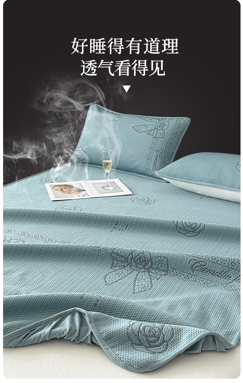 当前位置: 91家纺网 > 商品网购 > 床上用品 > 凉席 > 冰丝席 > 鑫钰 2025新款A类进口PE高冷感凉席高端聚乙烯凉豆豆高克重480克冰丝凉席床笠三件套 山茶物语-蓝