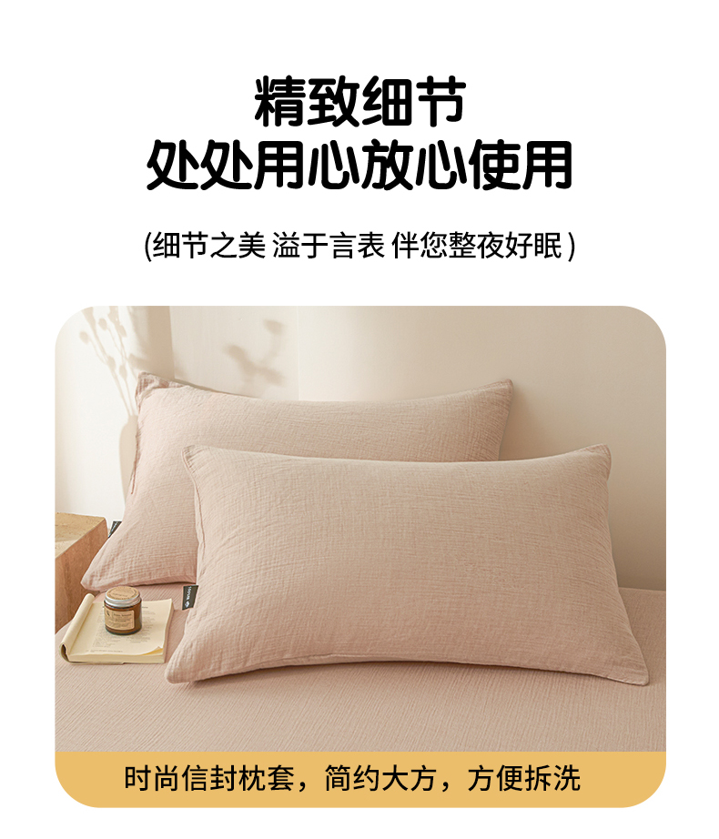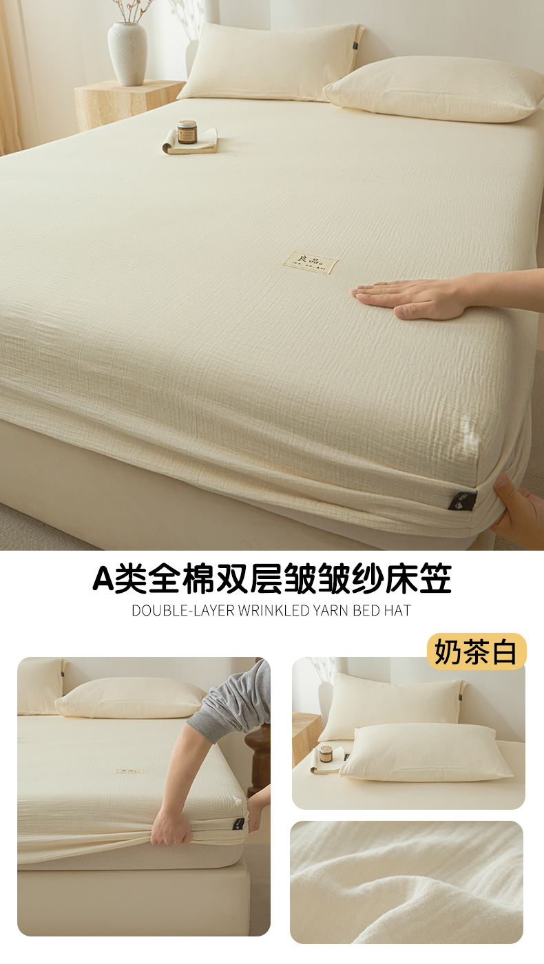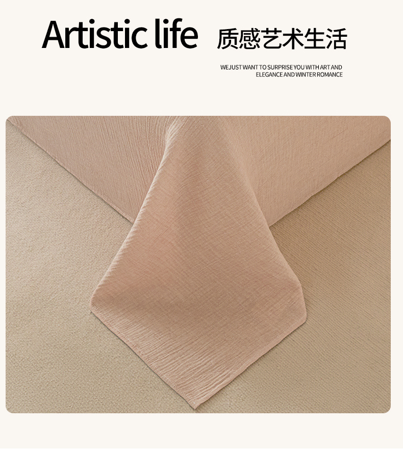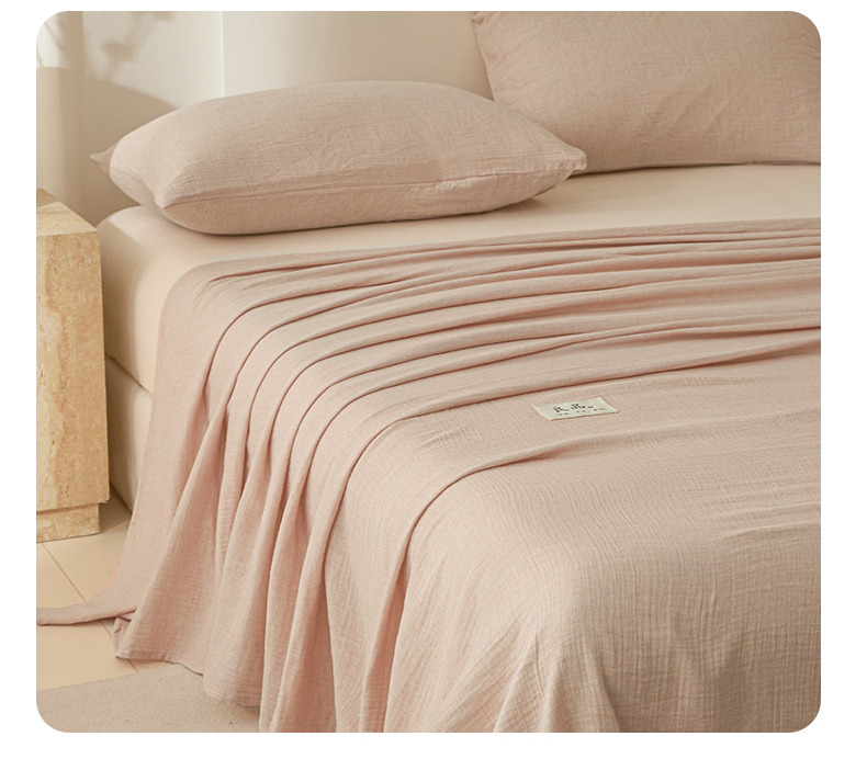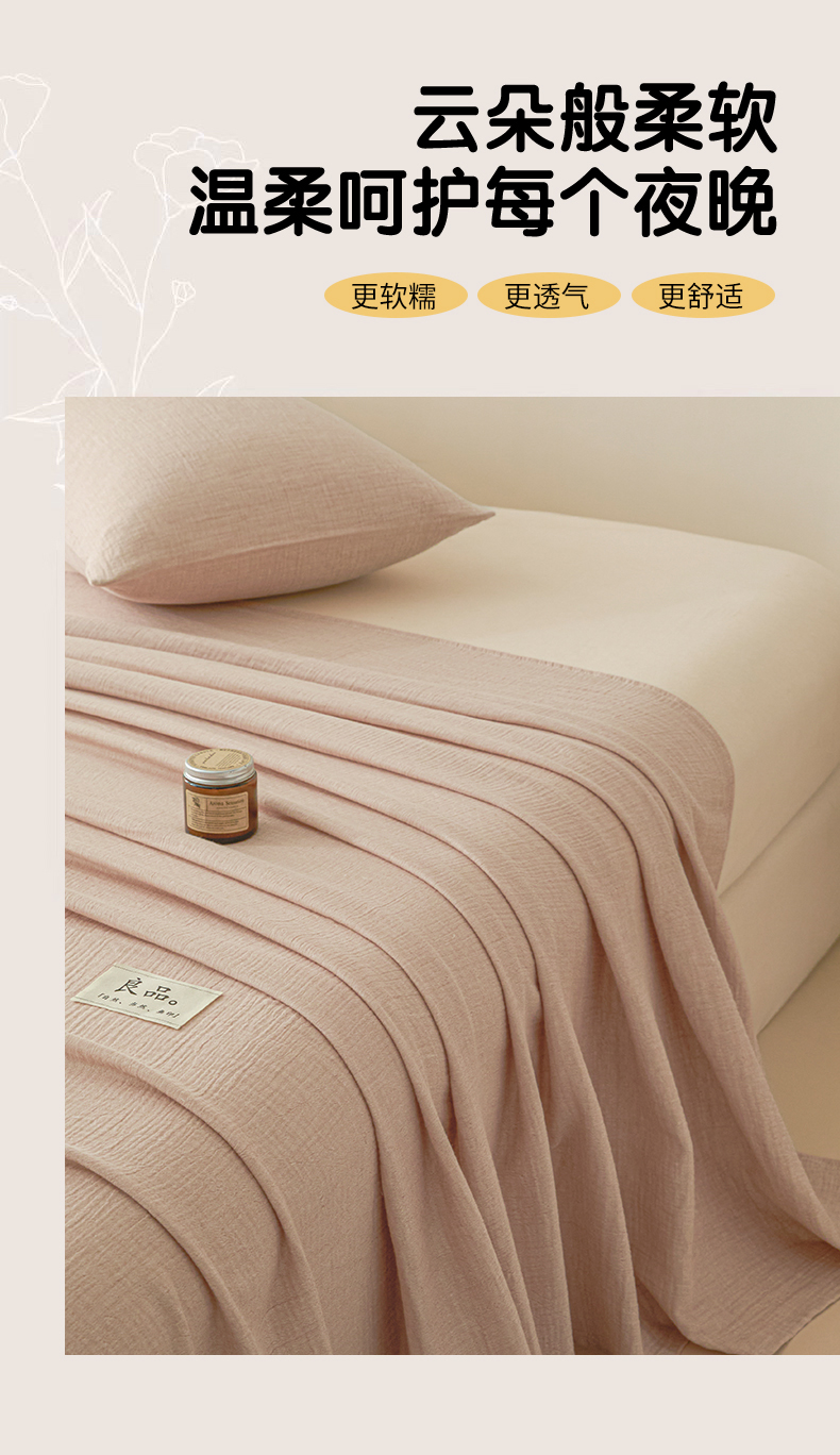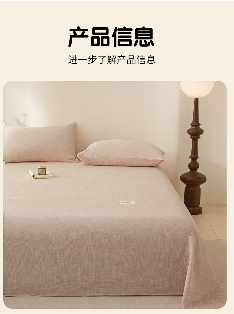 • 91家纺网 家纺一手货源 找家纺 鑫钰 2025新款纯色系列全棉双层皱皱纱床单-床笠 肉桂粉-床单