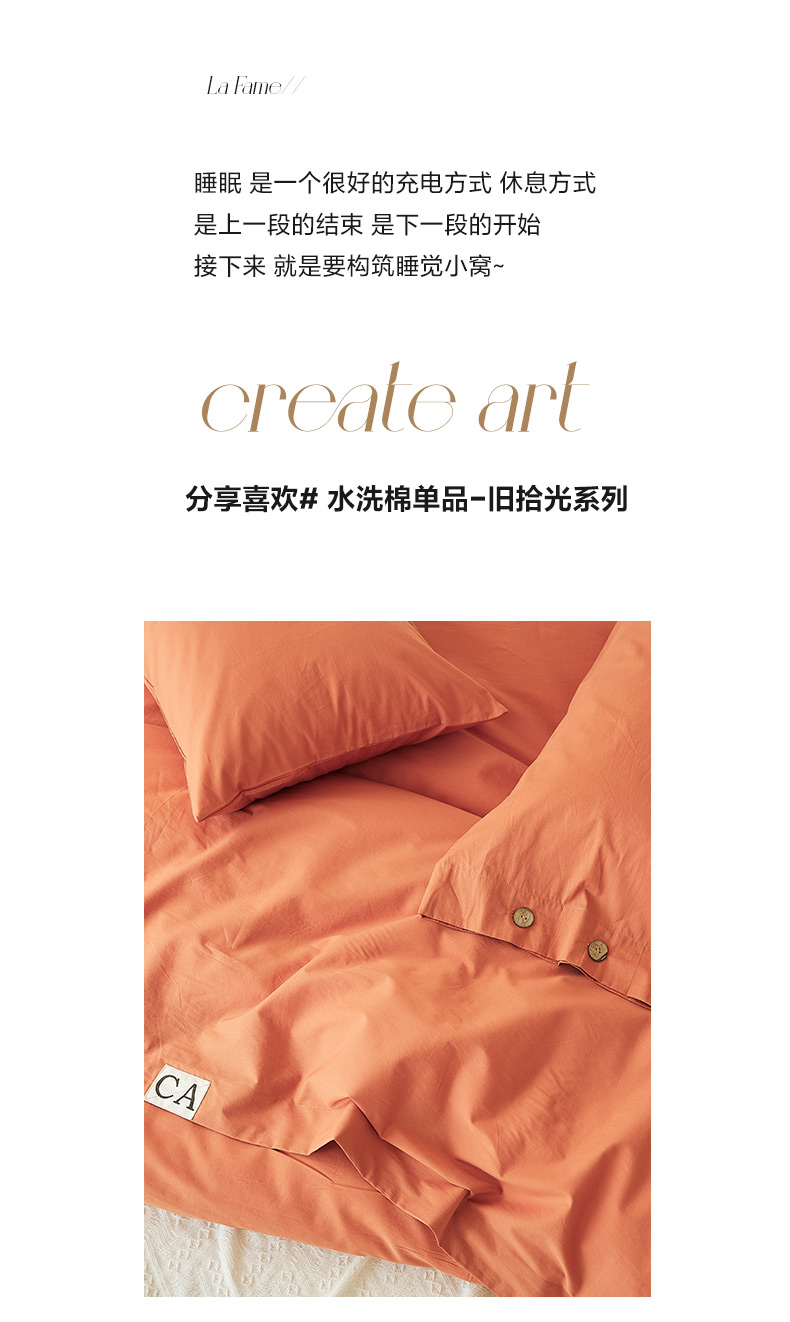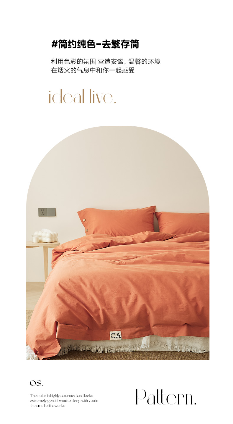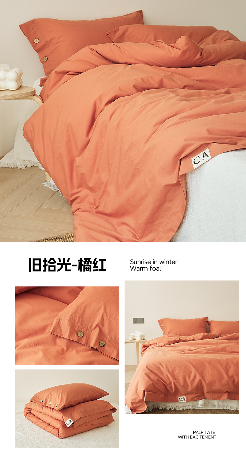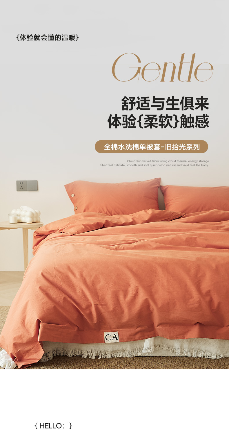 • 91家纺网 家纺一手货源 找家纺 EH家居 2025新款旧拾光系列全棉水洗棉单品被套 旧拾光-橘红