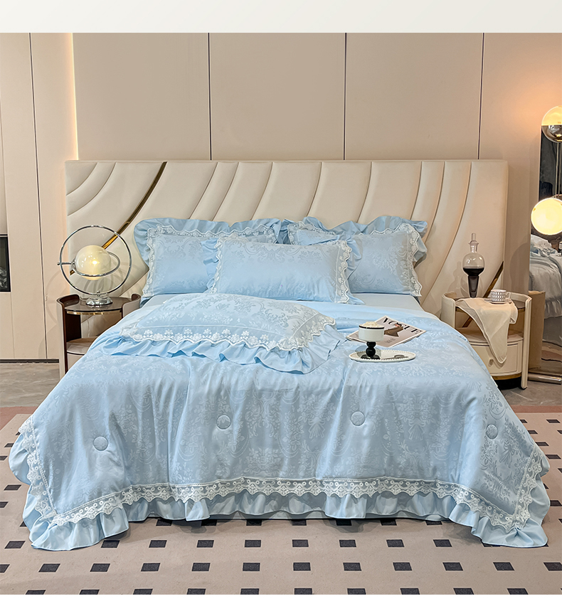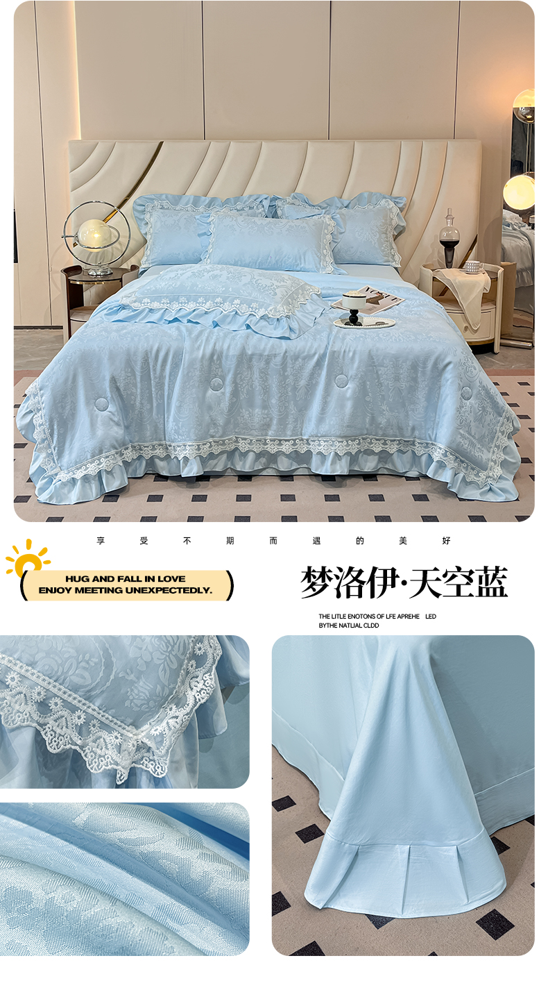 爱家(原缔乐家纺) 2025新款天丝棉提花夏被四件套-梦洛伊 梦洛伊-天空兰