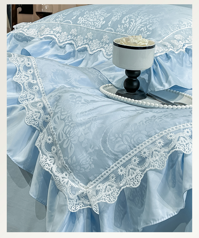 商品名称:爱家(原缔乐家纺) 2025新款天丝棉提花夏被四件套-梦洛伊 梦洛伊-天空兰