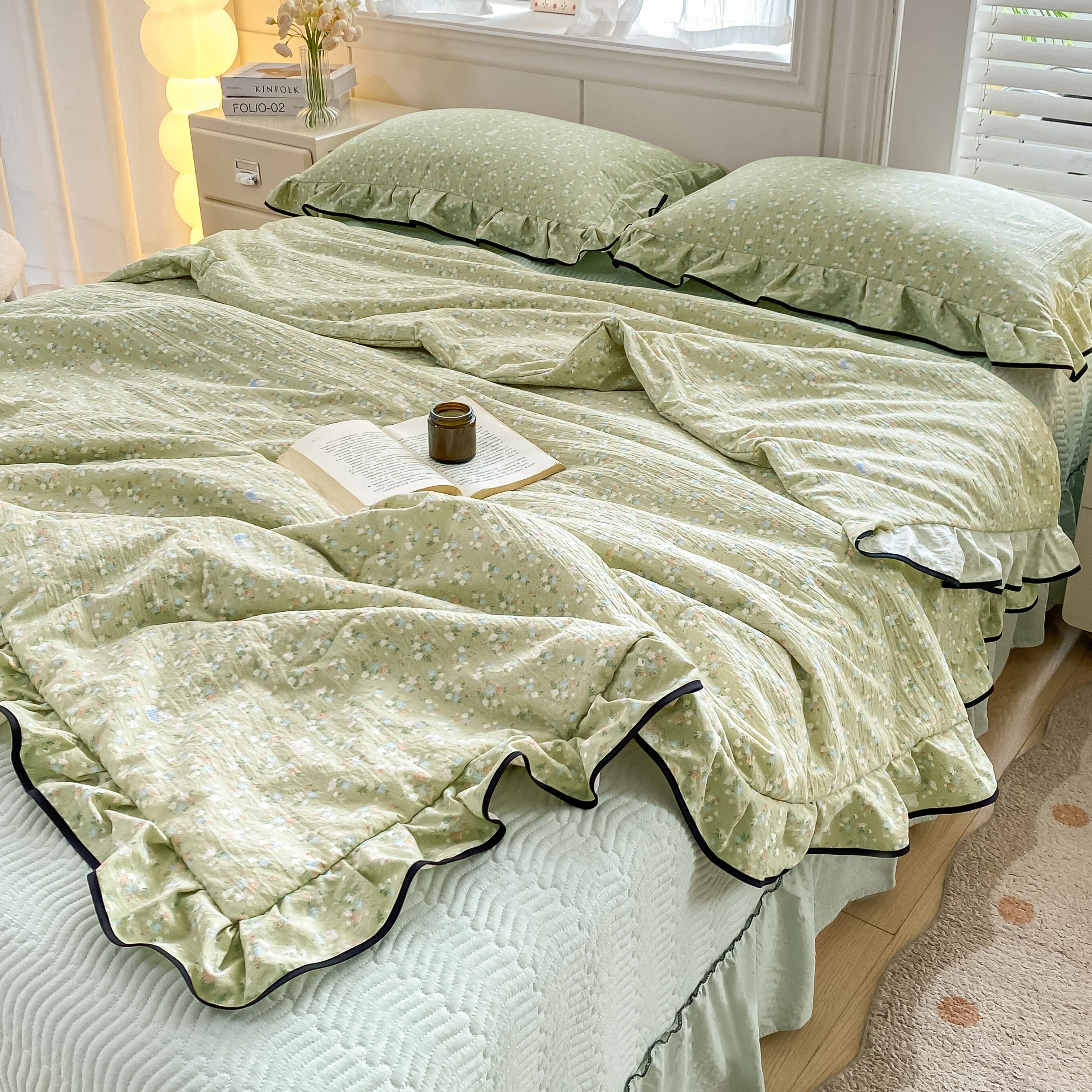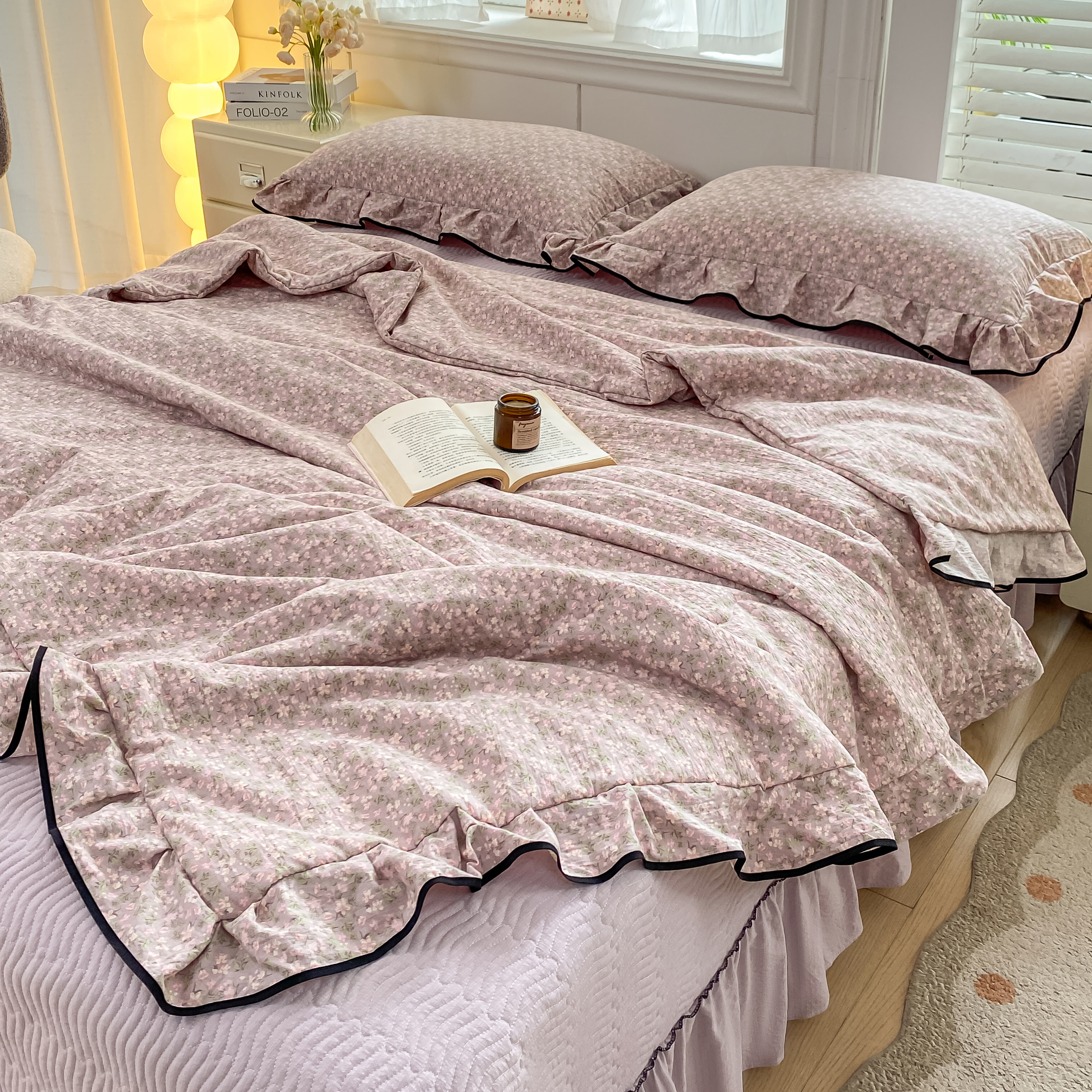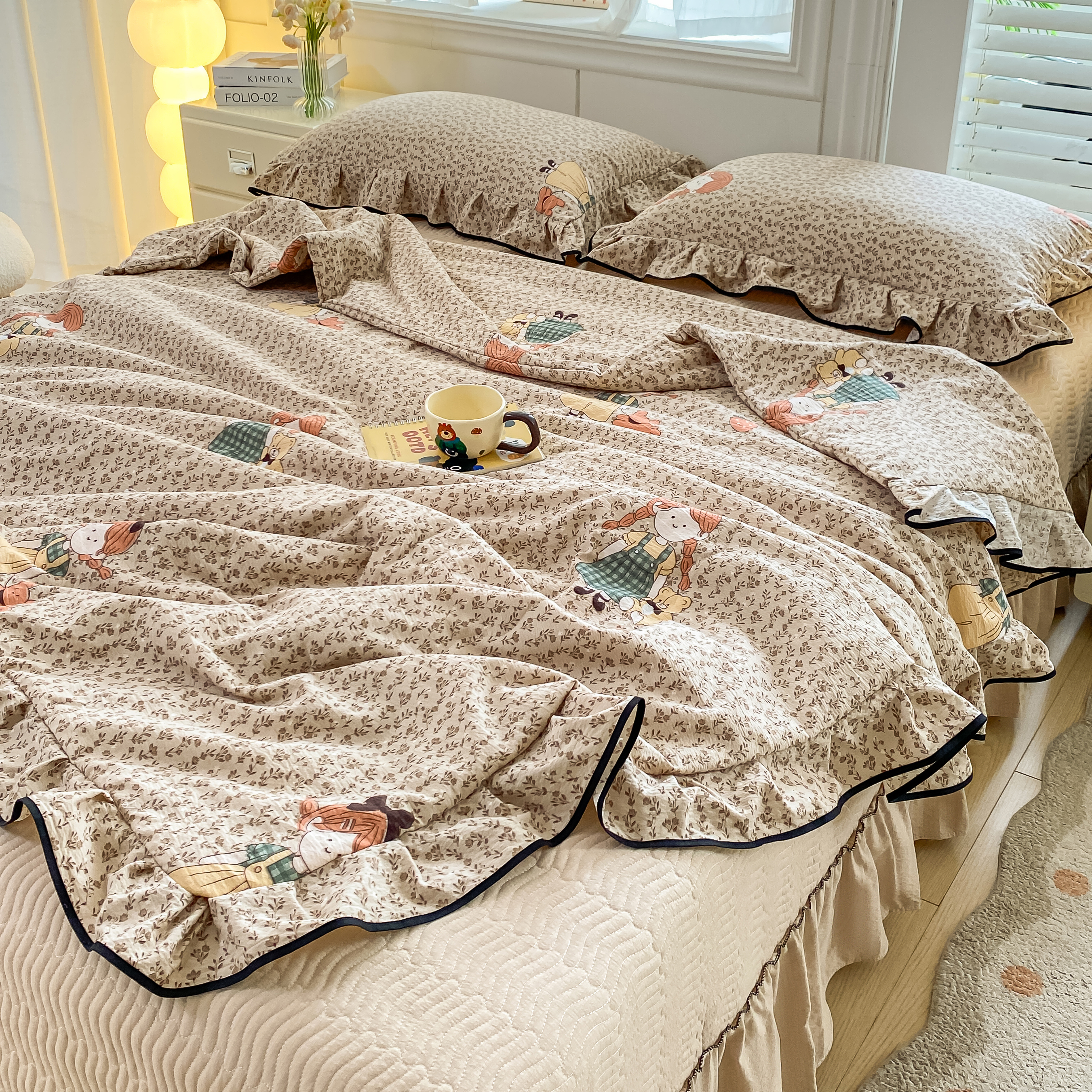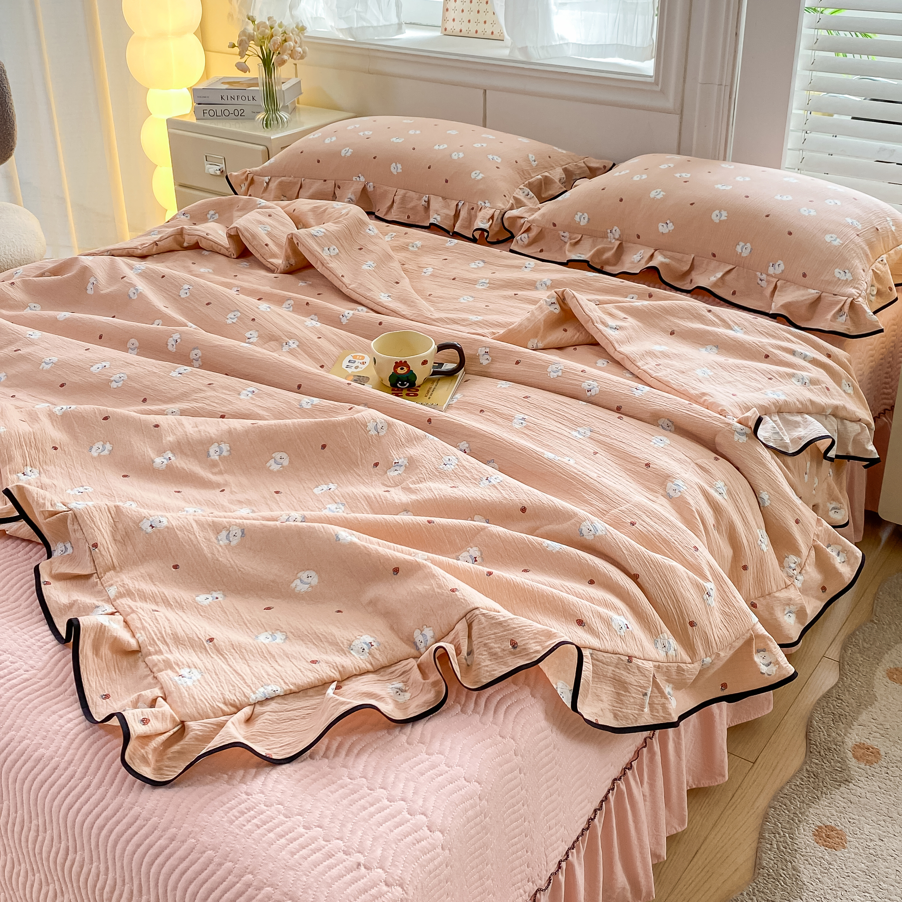 (总)希朵家纺 2025新款木棉皱皱纱多功能床盖四件套,法式庄园粉,法式庄园绿,格子兔,可爱狗狗,浪漫花海绿,满满爱意,田间女孩,熊多多,紫蝴蝶,紫色浪漫