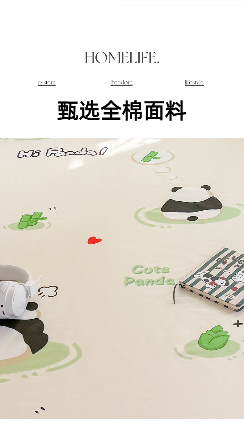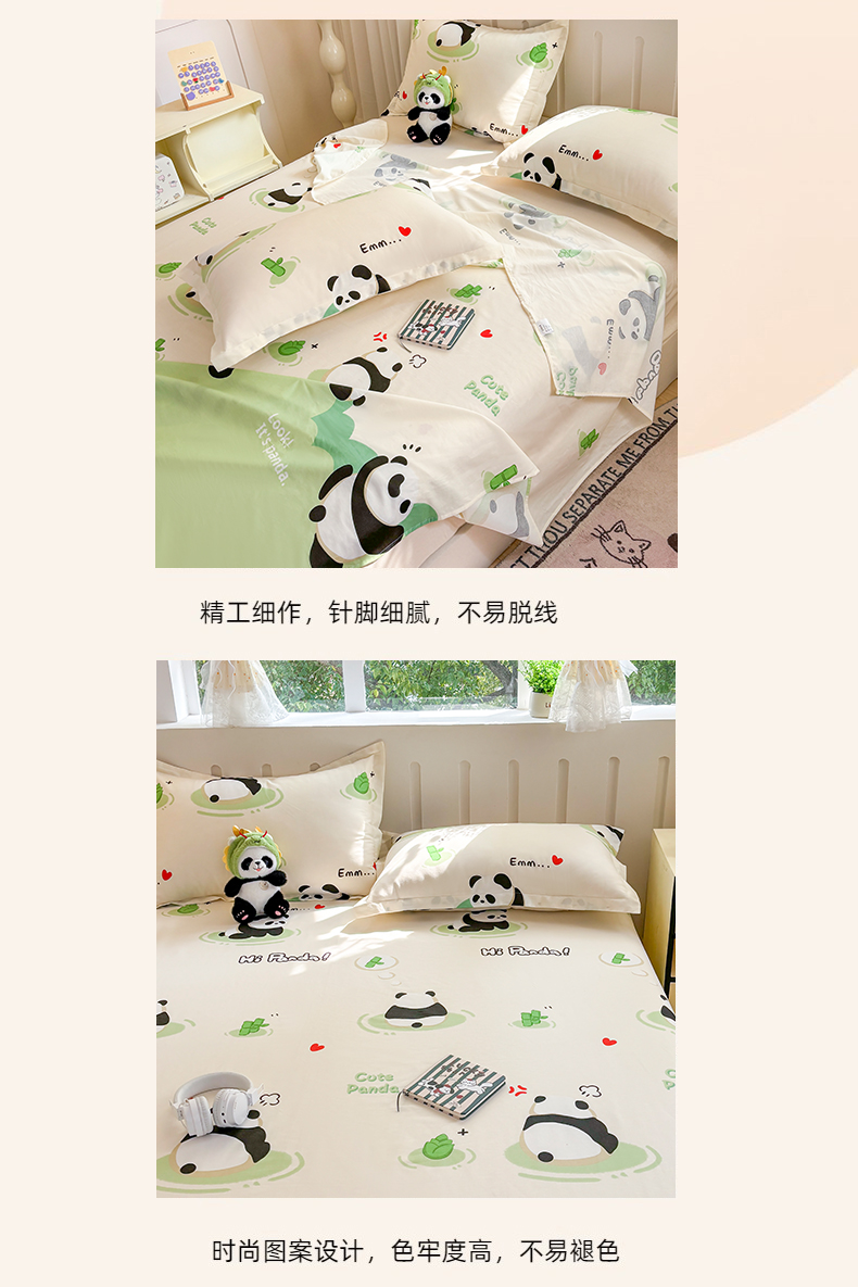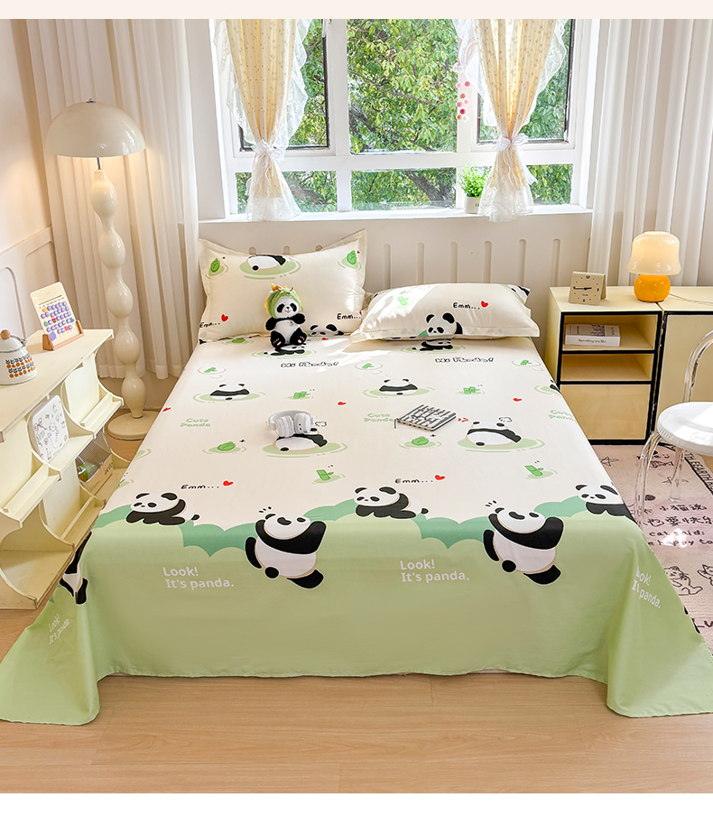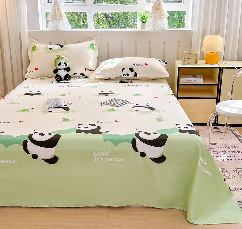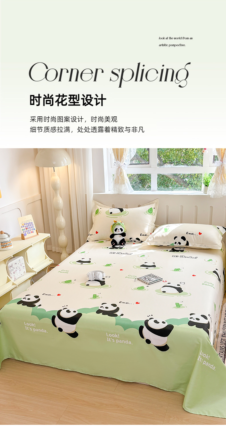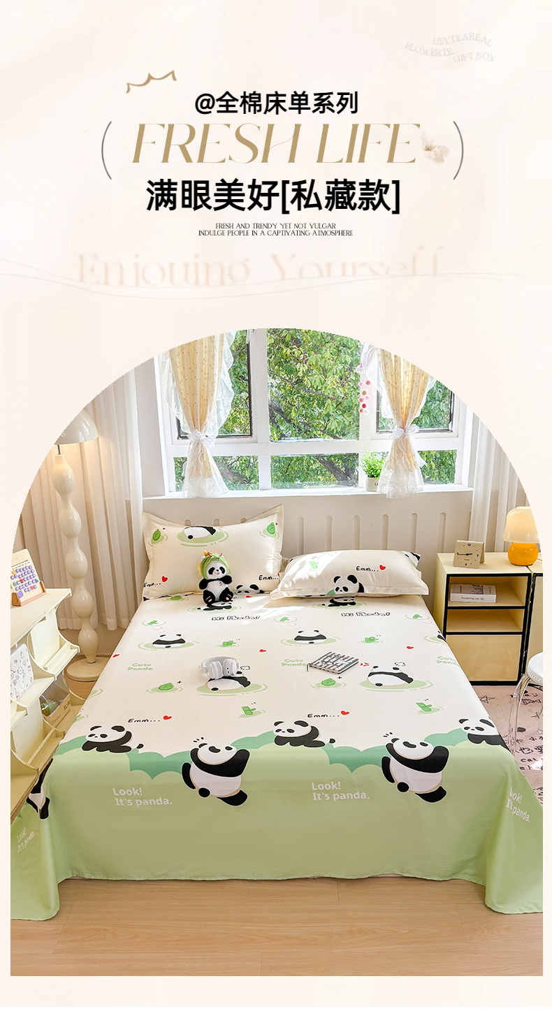 • 91家纺网 家纺一手货源 找家纺 大吉 2025新款亲肤舒适全棉纯棉喷气小清新印花系列单床单床单单件单品床单 萌萌潘达