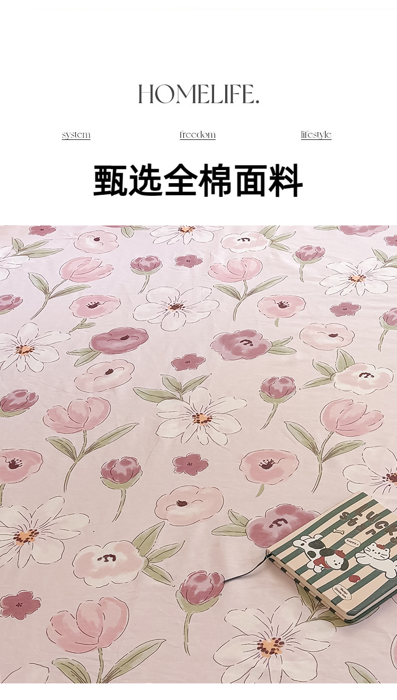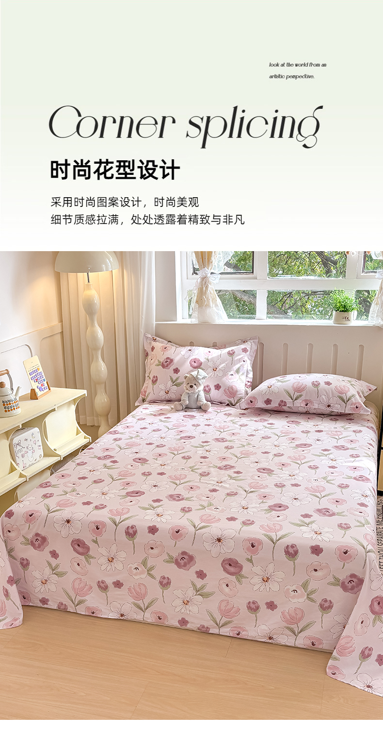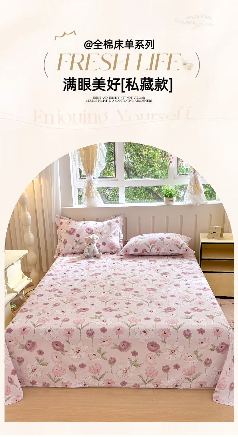 • 91家纺网 家纺一手货源 找家纺 大吉 2025新款亲肤舒适全棉纯棉喷气小清新印花系列单床单床单单件单品床单 幸福时光