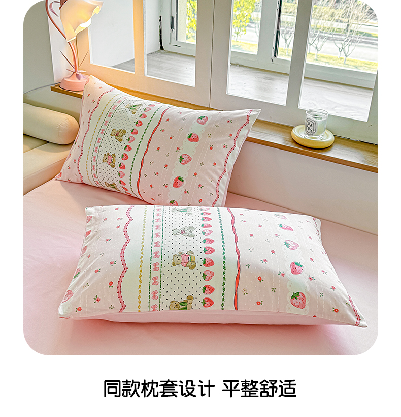 商品名称:芊寻家居 2025新款13372全棉印花系列四件套 草莓甜心
