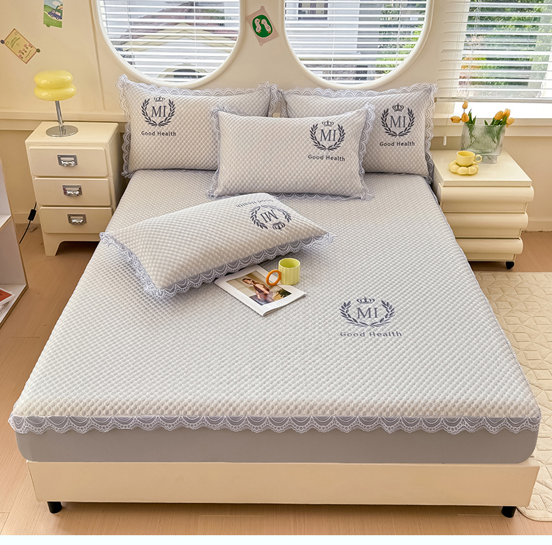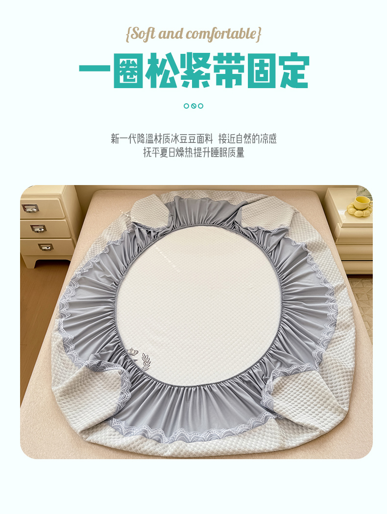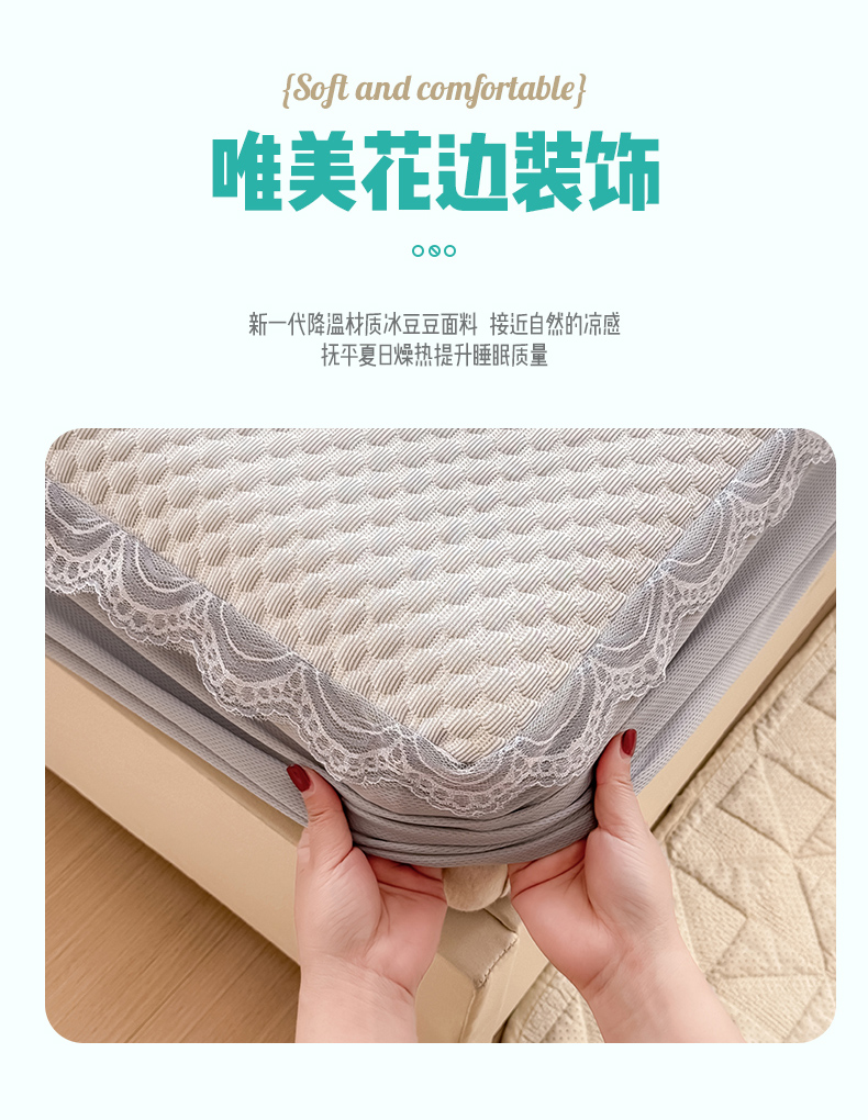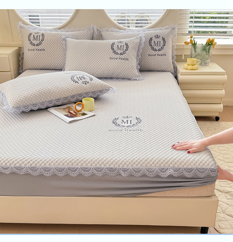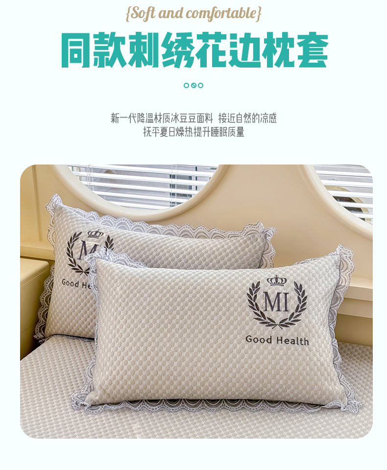 • 91家纺网 家纺一手货源 找家纺 莉莉安家纺 2025新款禾风系列工艺款凉豆豆凉席床笠款三件套单件 禾风-浅灰(枕套)