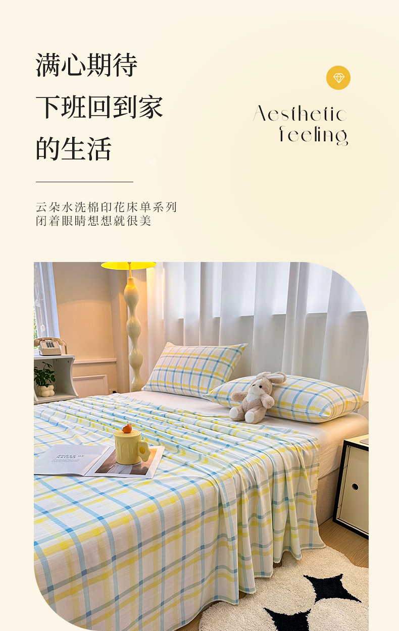 • 91家纺网 家纺一手货源 找家纺 雨彤家纺 2025新款A类母婴级软糯糯云朵水洗棉床单 格心生活