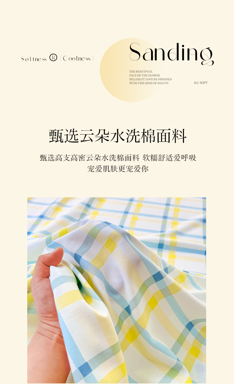 当前位置: 91家纺网 > 商品网购 > 床上用品 > 床单 > 雨彤家纺 2025新款A类母婴级软糯糯云朵水洗棉床单 格心生活