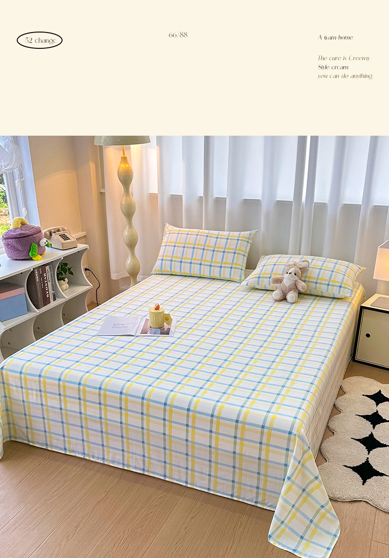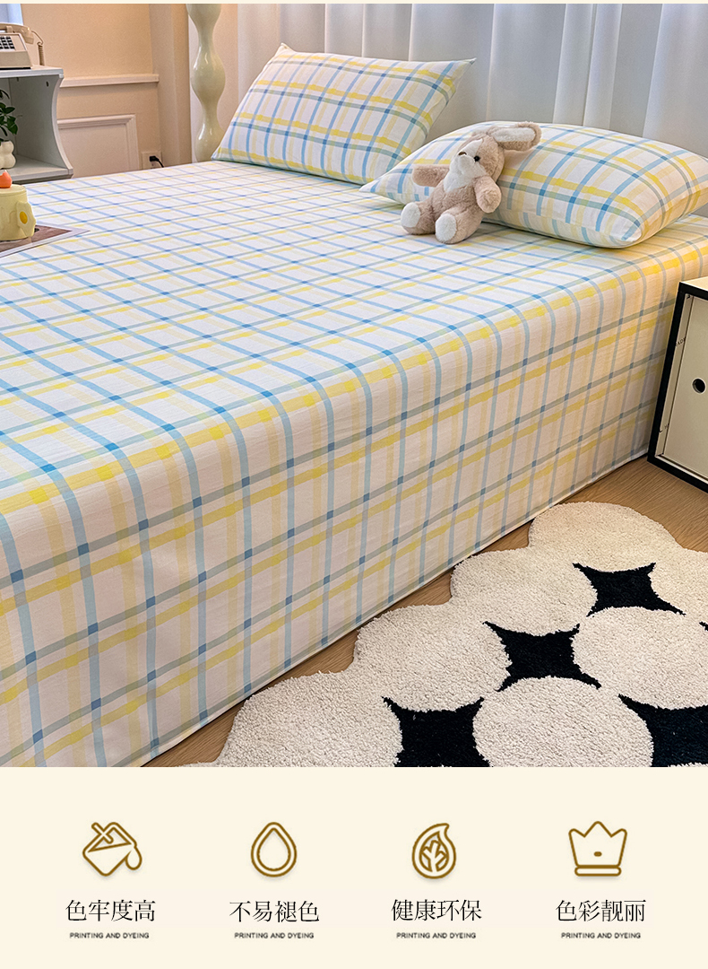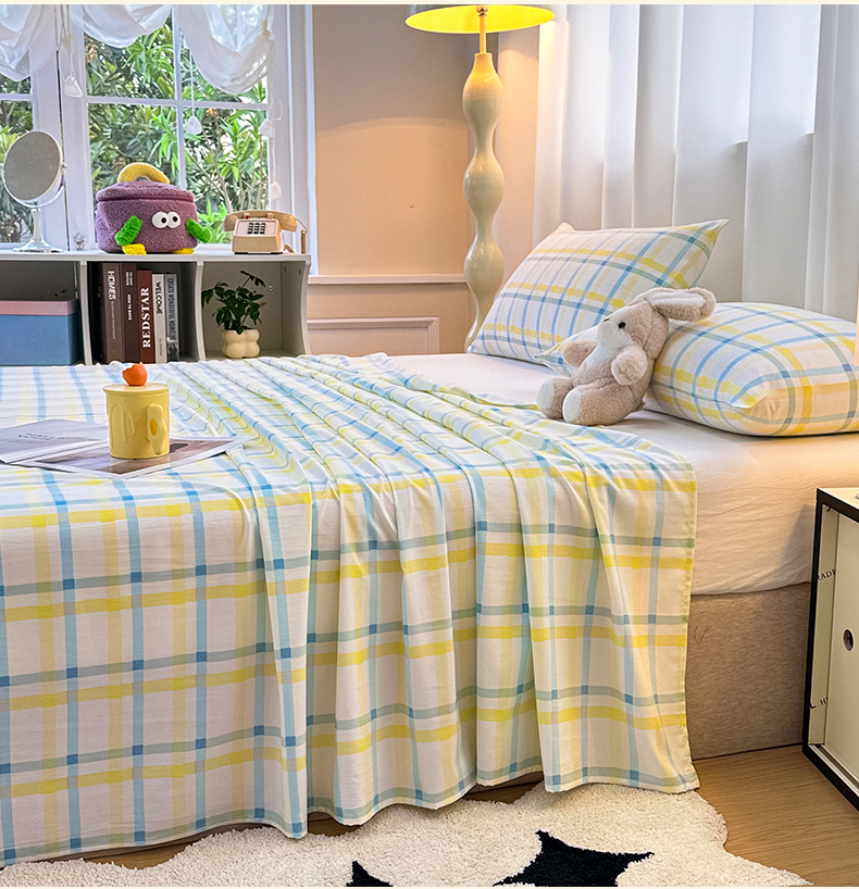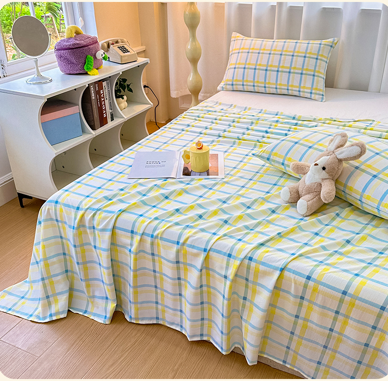 雨彤家纺 2025新款A类母婴级软糯糯云朵水洗棉床单 格心生活