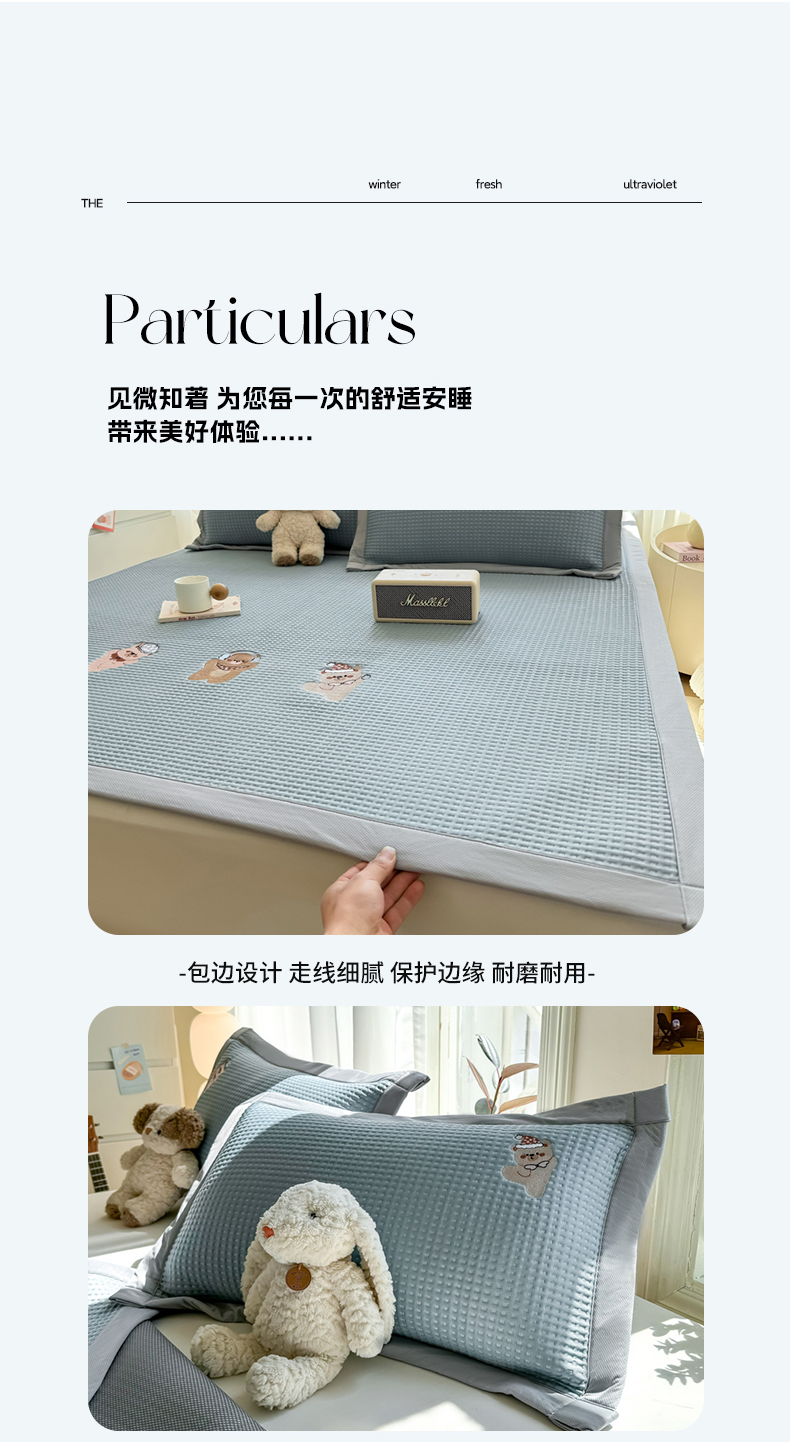 当前位置: 91家纺网 > 商品网购 > 床上用品 > 凉席 > 其他凉席 > 萌飞 2025新款乙纶PE中分子华夫格凉豆豆凉席 中分子PE凉豆豆凉席-欢乐熊-时尚蓝【床笠款】