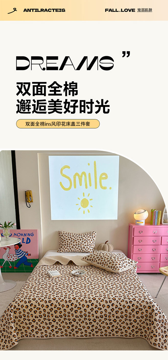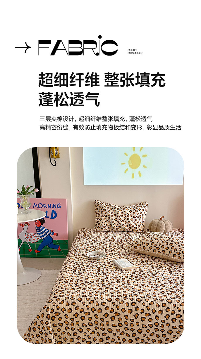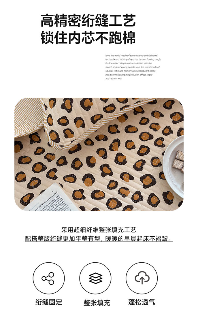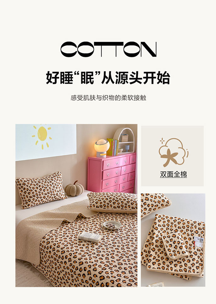 琳可家居 2025新款13070印花款双面全棉全棉床盖 豹纹