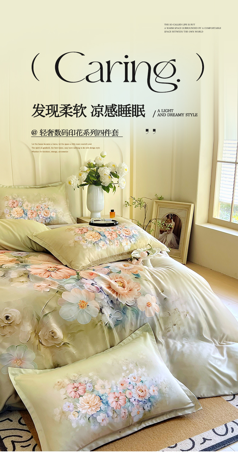 (总)大麦乐田 2025新款珍珠棉大版印花四件套,境澜-玉,若芸-紫,境澜-灰,花涧-粉,境涧-紫,芳华-紫,若芸-粉,芳华-黄,花涧-桔,梦谷-粉,梦谷-绿