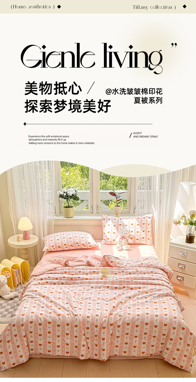(总)丝芙妮家居(原乐视家纺) 2024新款A类色织水洗棉新疆棉花夏被,可颂咖,洛川棕,梦田-绿,暮落-绿,暮落-米黄,暮落-杏,暮落-粉
