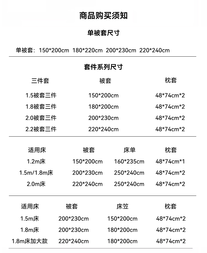 2.2m被套三件 被套220*240cm 枕套48*74cm一对 | ¥98.00 |