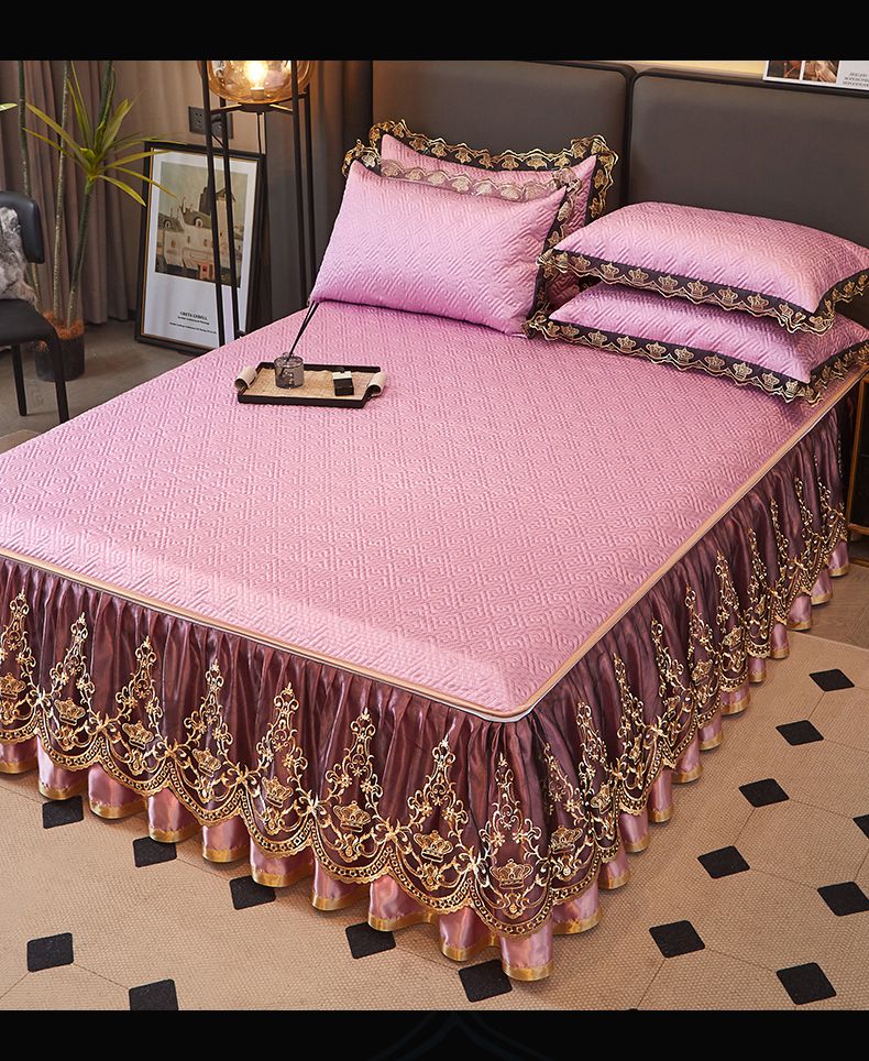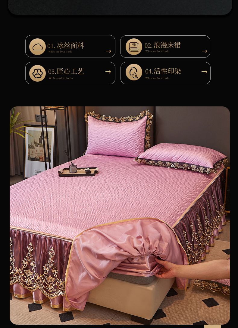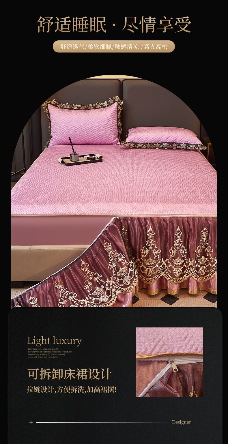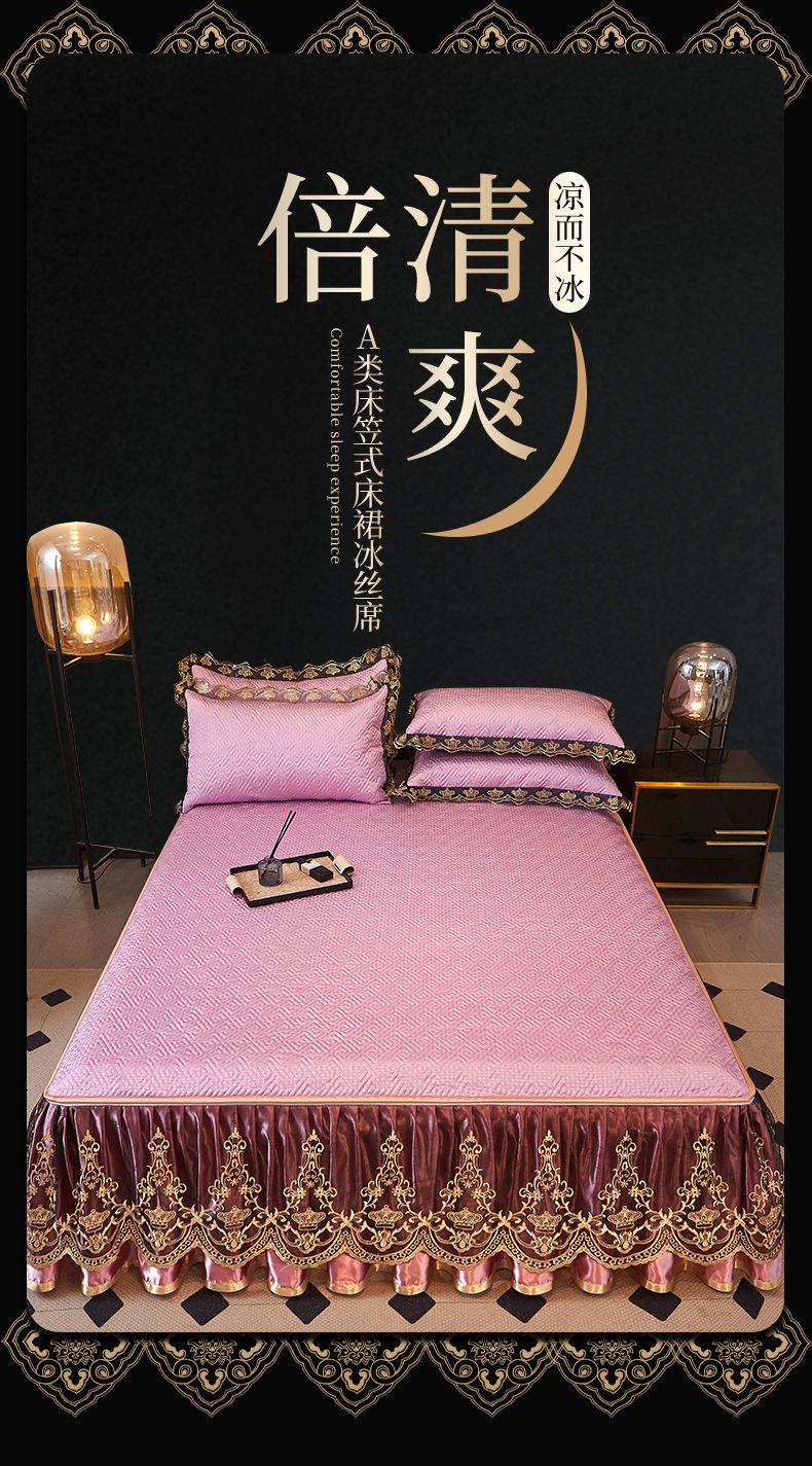 商品名称:罗艺轩 2025新款可拆卸床笠式床裙印花冰丝席 罗曼-粉紫