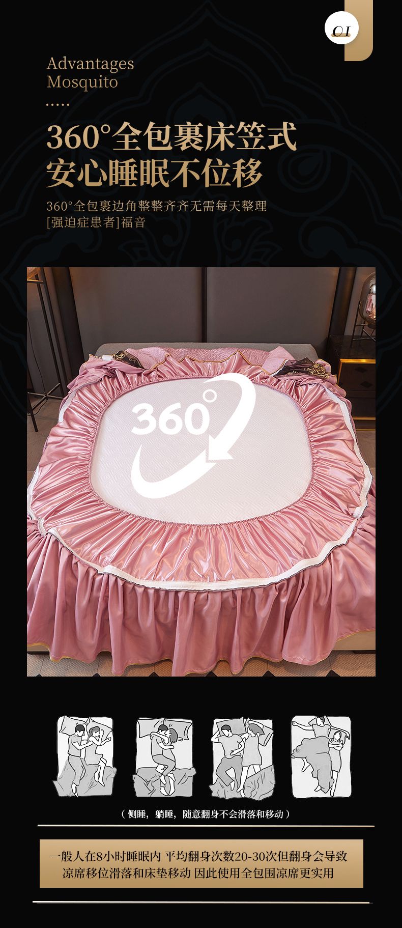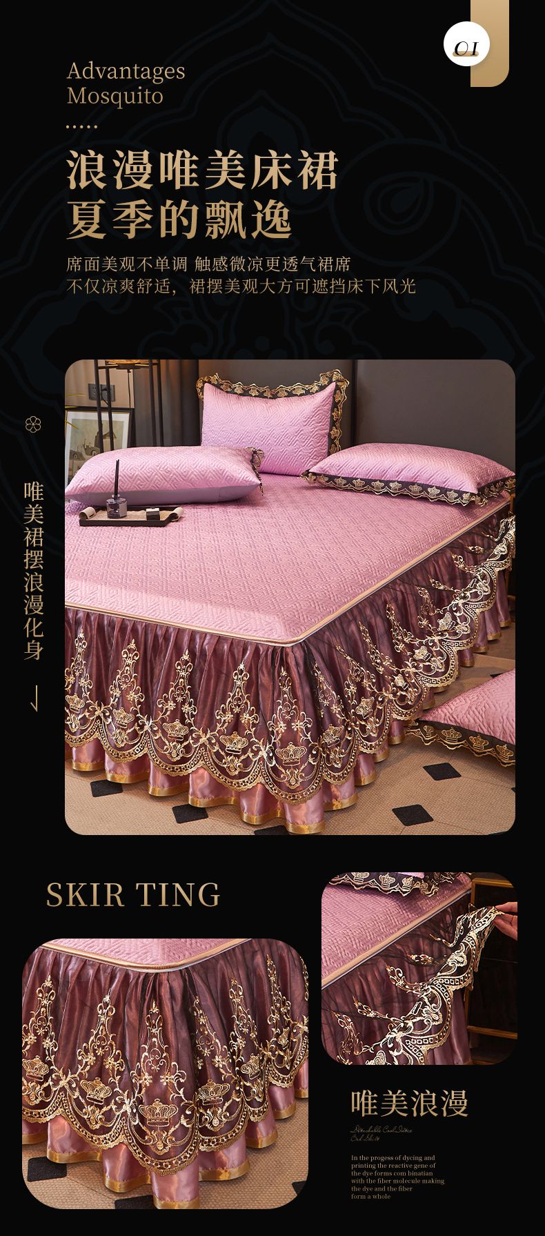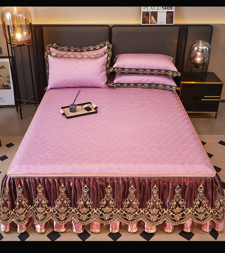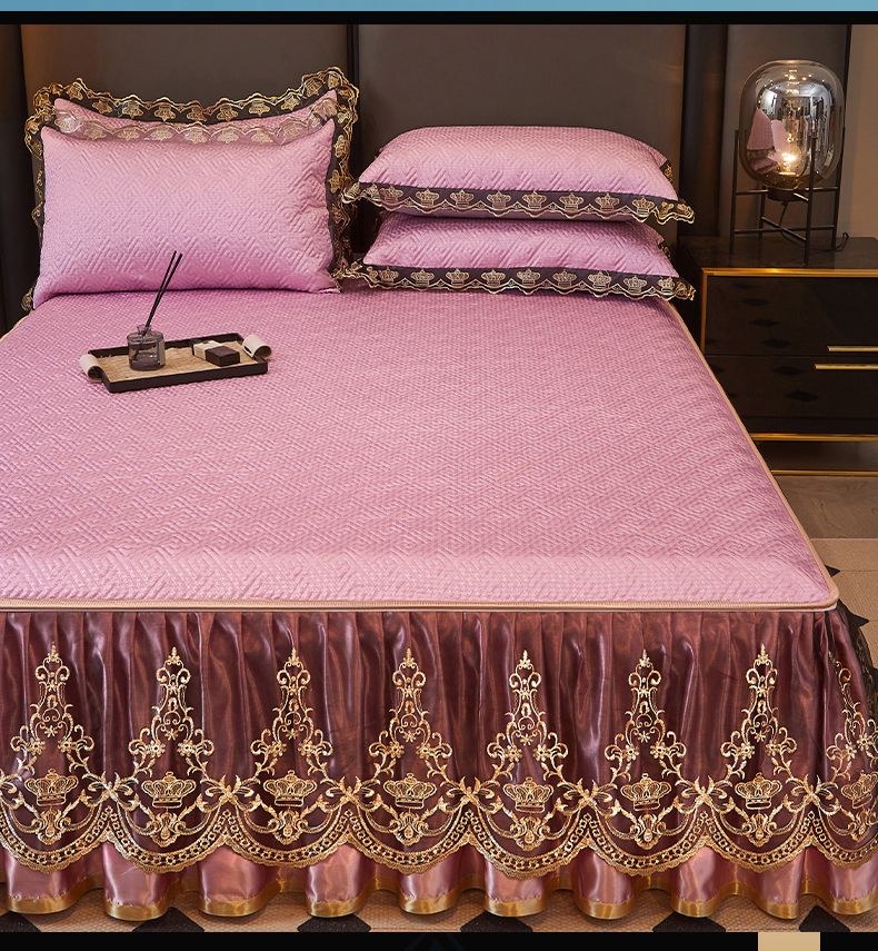 商品名称:罗艺轩 2025新款可拆卸床笠式床裙印花冰丝席 罗曼-粉紫