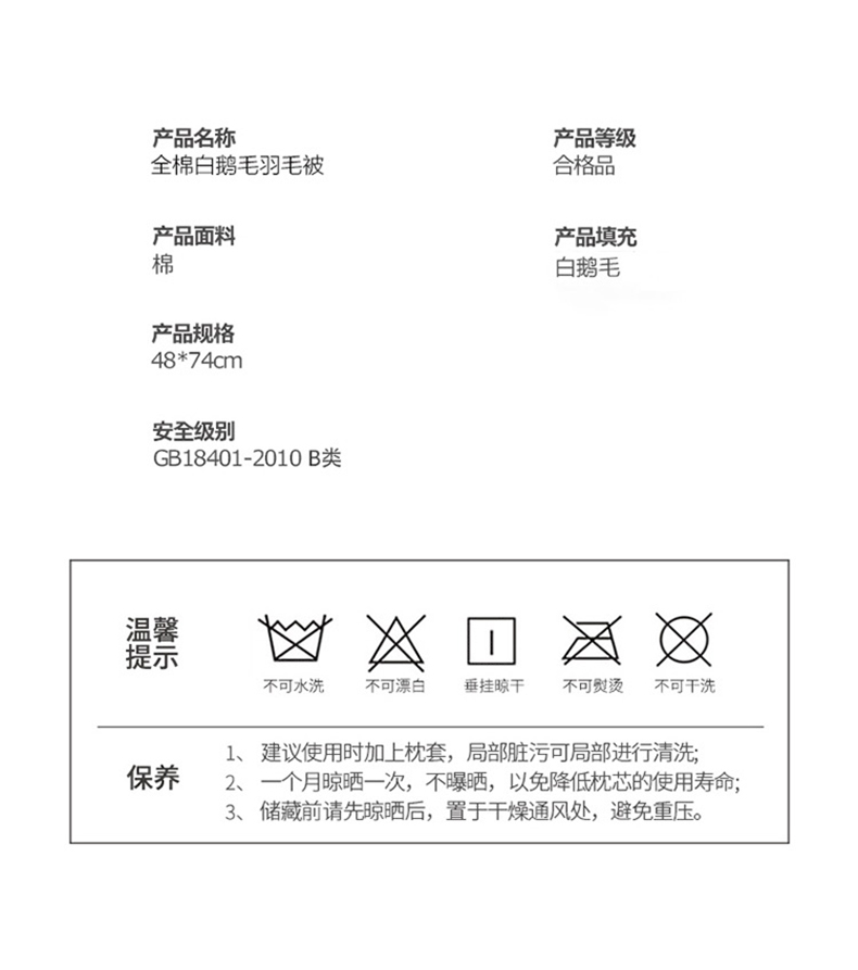白鹅毛被-180x220cm填充900g春秋被 | ¥140.00 |