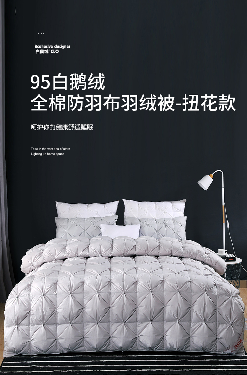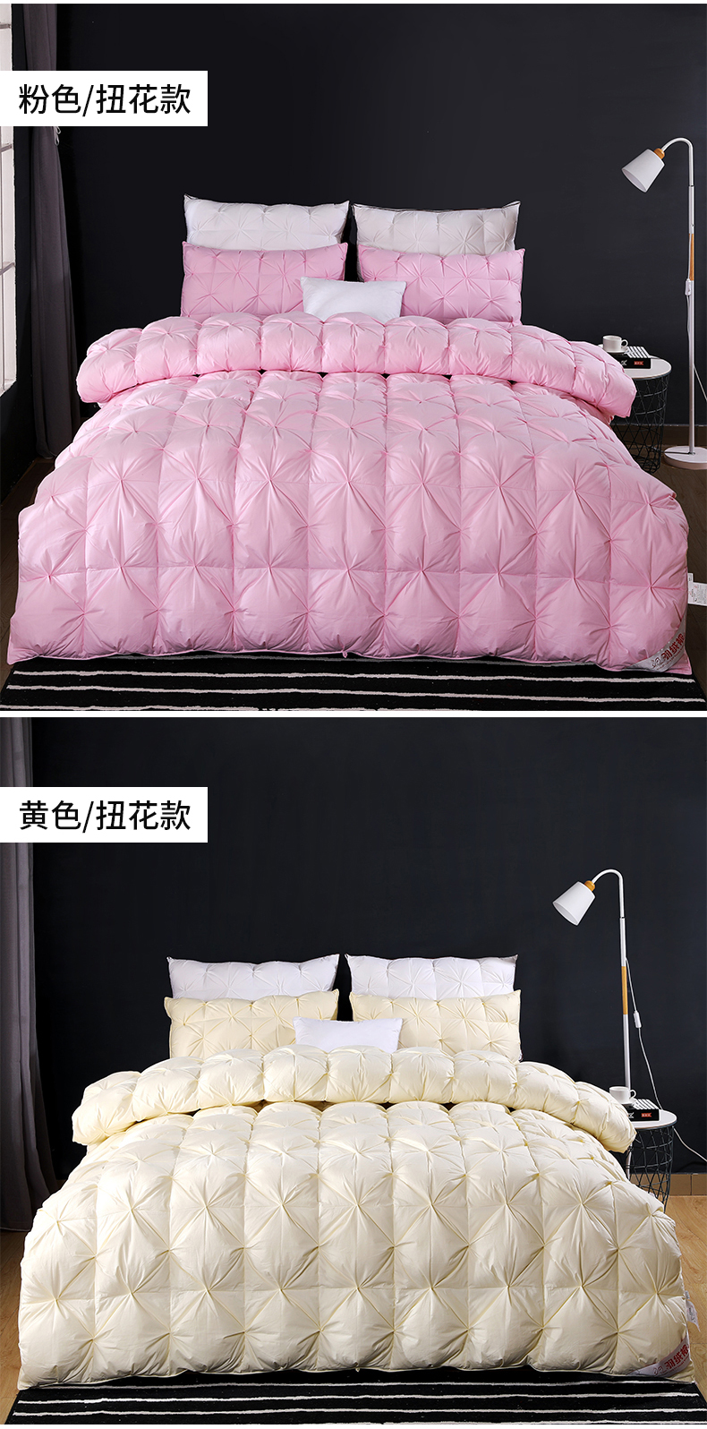 • 91家纺网 家纺一手货源 找家纺 (总)呆头鹅羽绒工厂店 2025新款80支柔赛丝羽绒被-扭花款 白鹅绒鸭绒被子被芯羽绒工厂店,白色,粉色,黄色,灰色