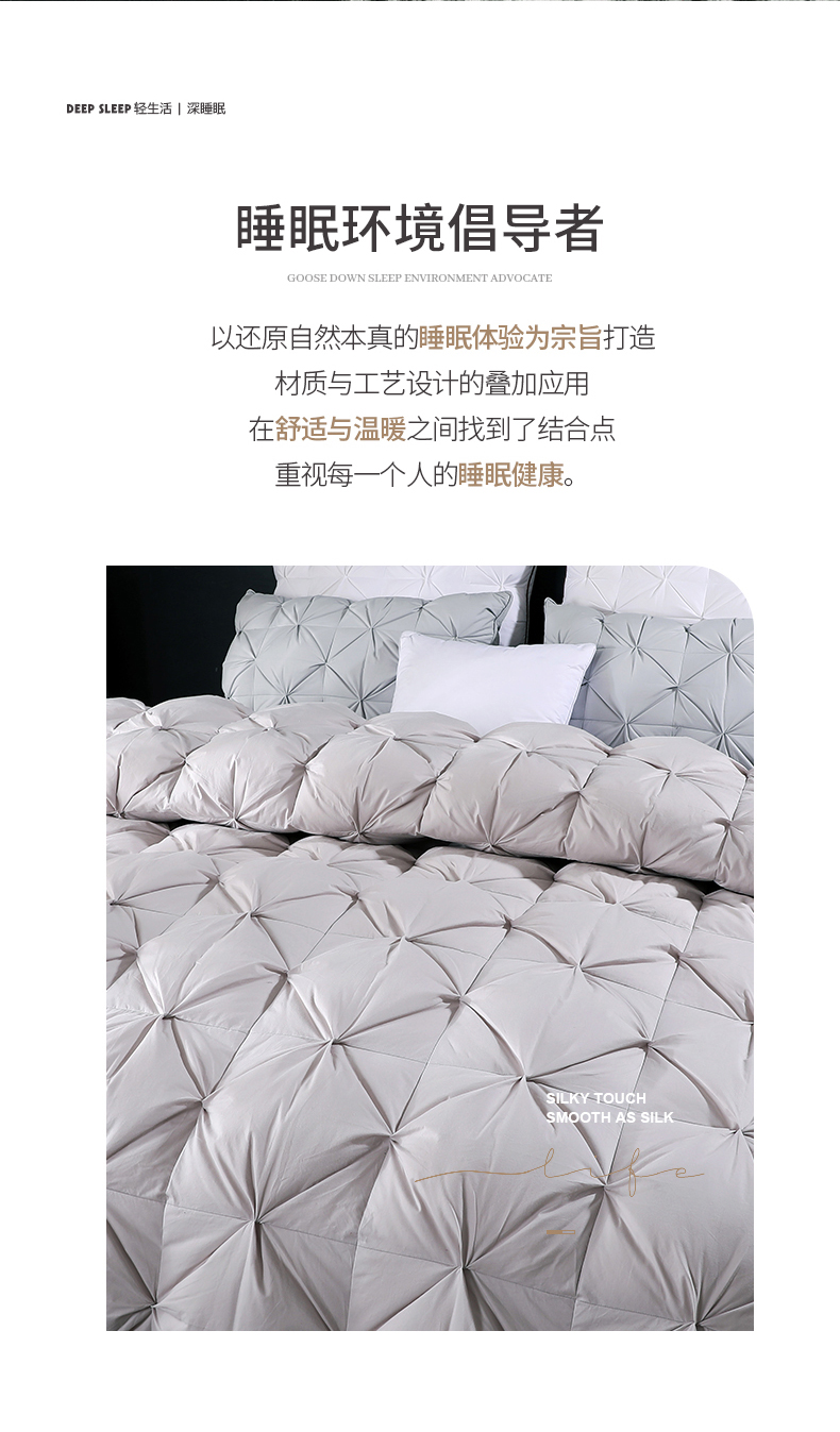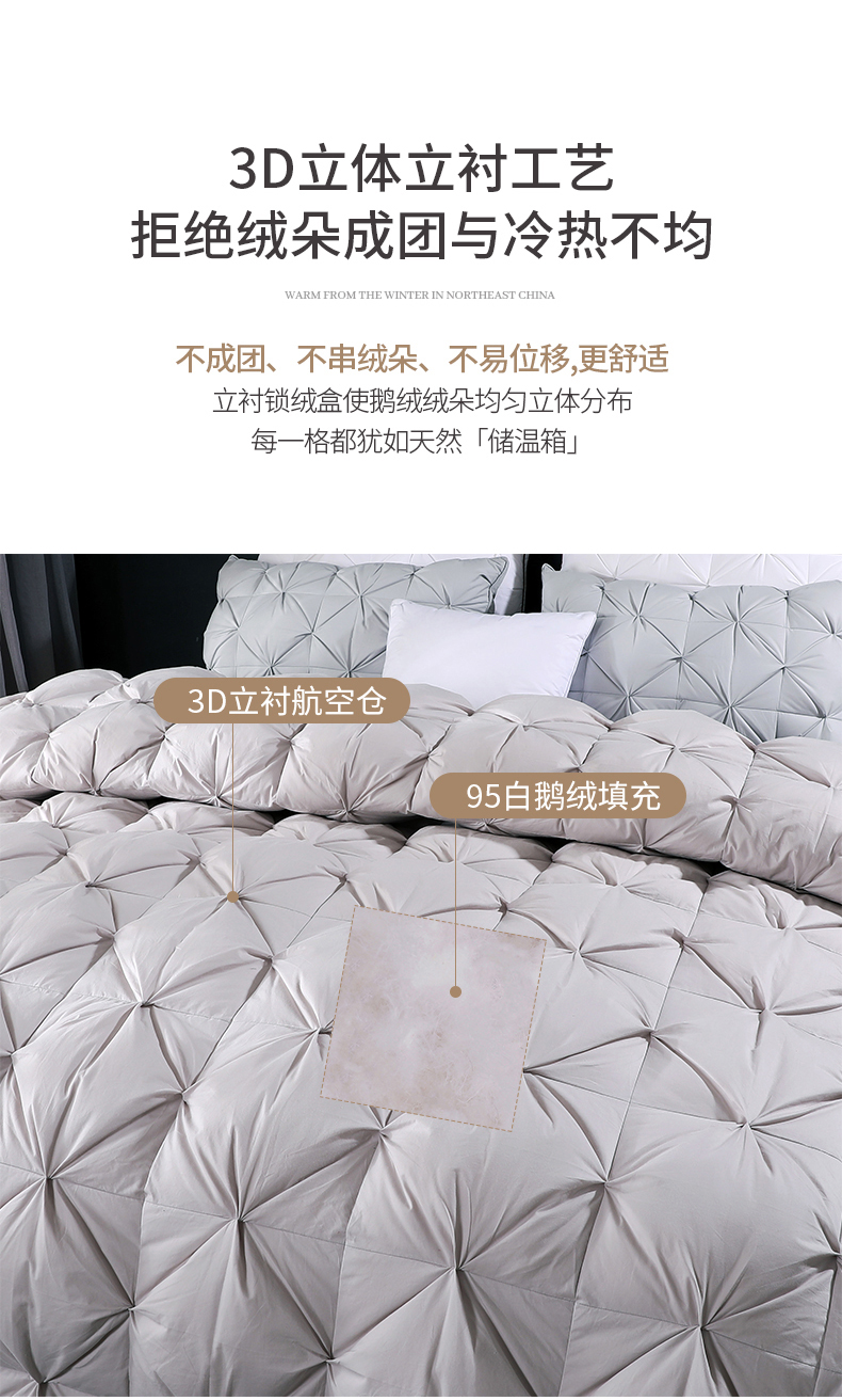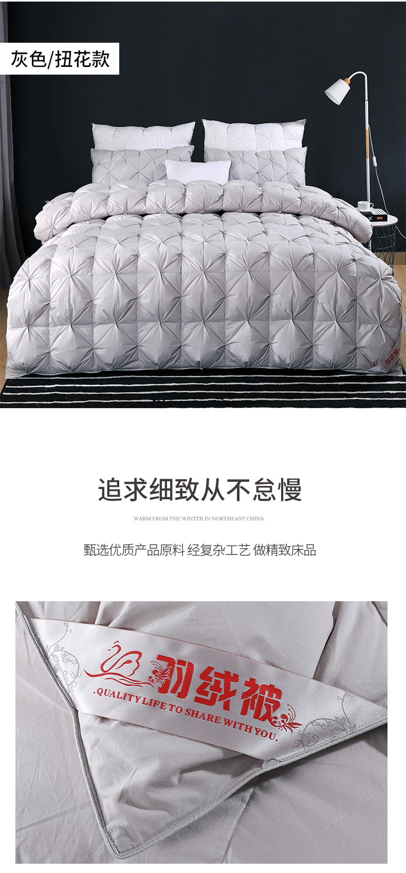 • 91家纺网 家纺一手货源 找家纺 呆头鹅羽绒工厂店 2025新款全棉防羽布羽绒被-扭花款 白鹅绒鸭绒被子被芯羽绒工厂店 灰色