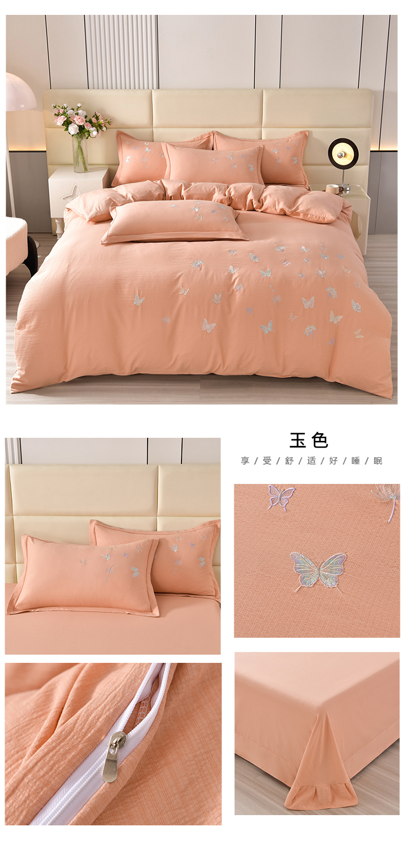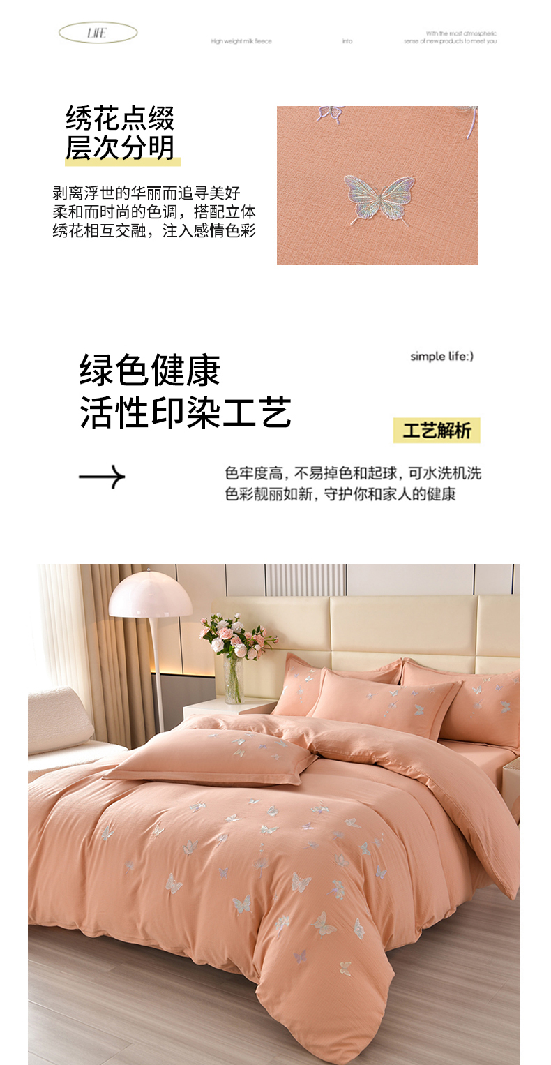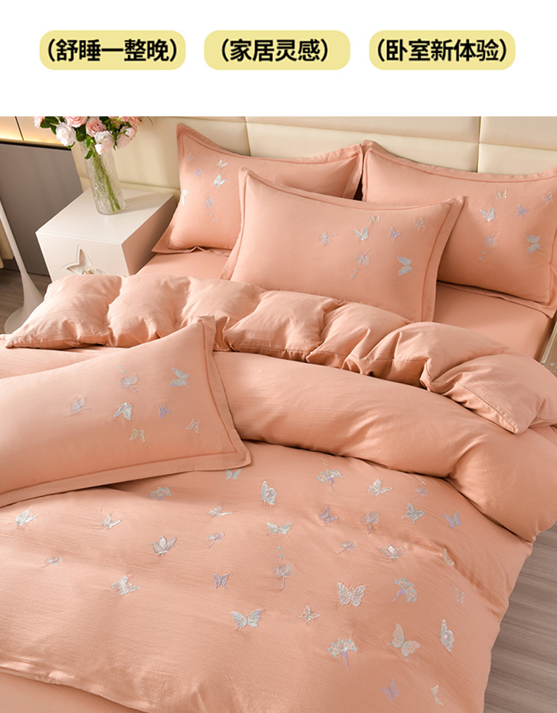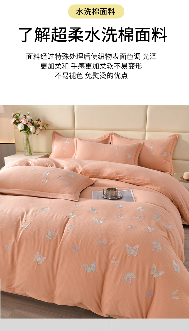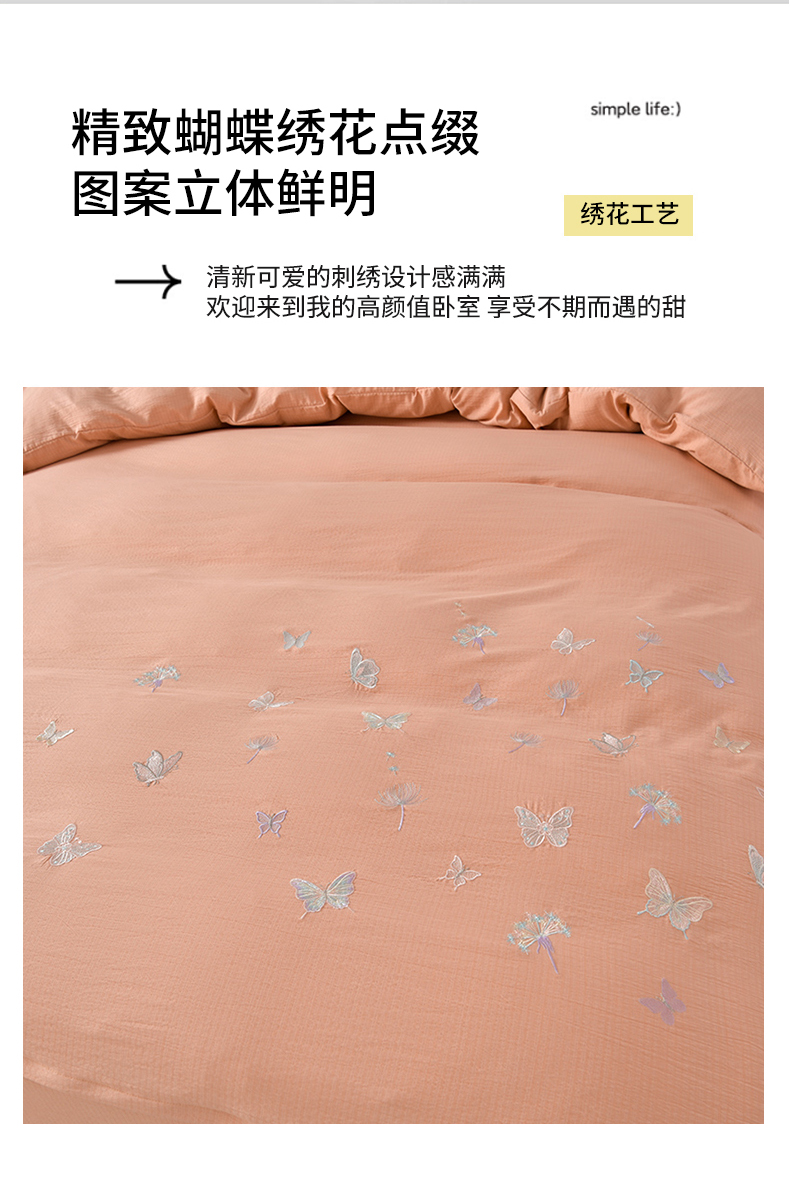 商品名称:星窝2025新款绣花水洗棉套件-蝶舞飞扬系列 玉色