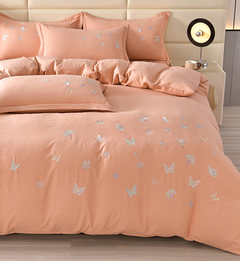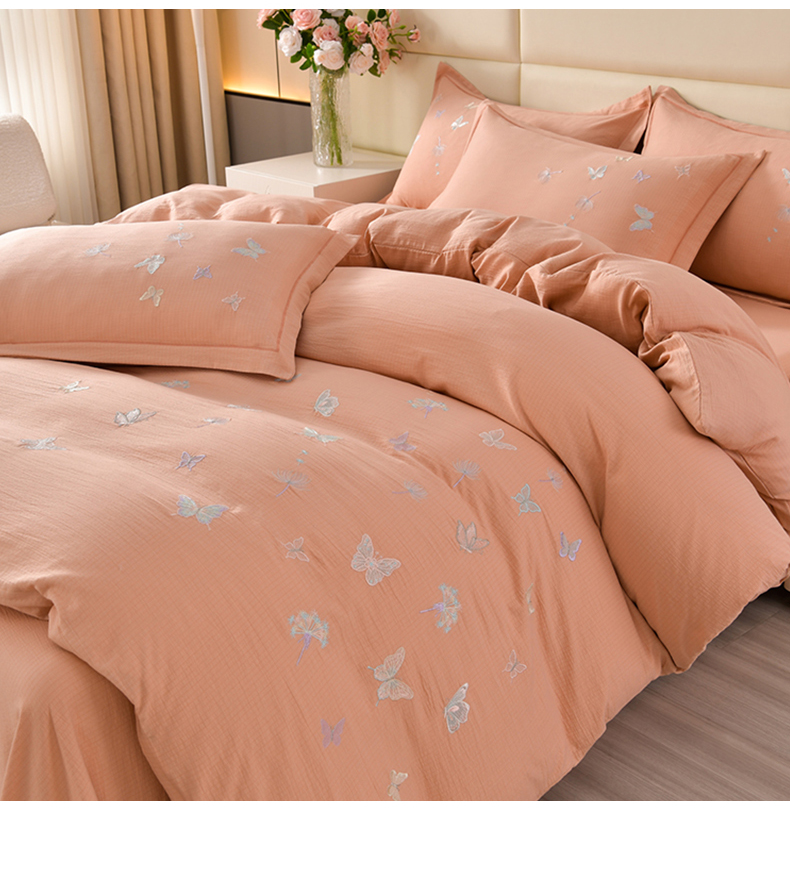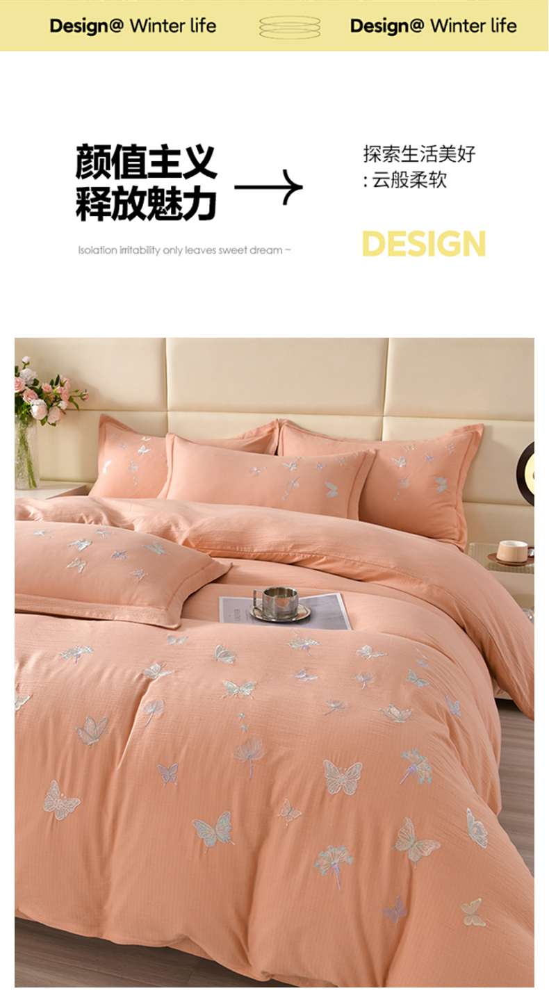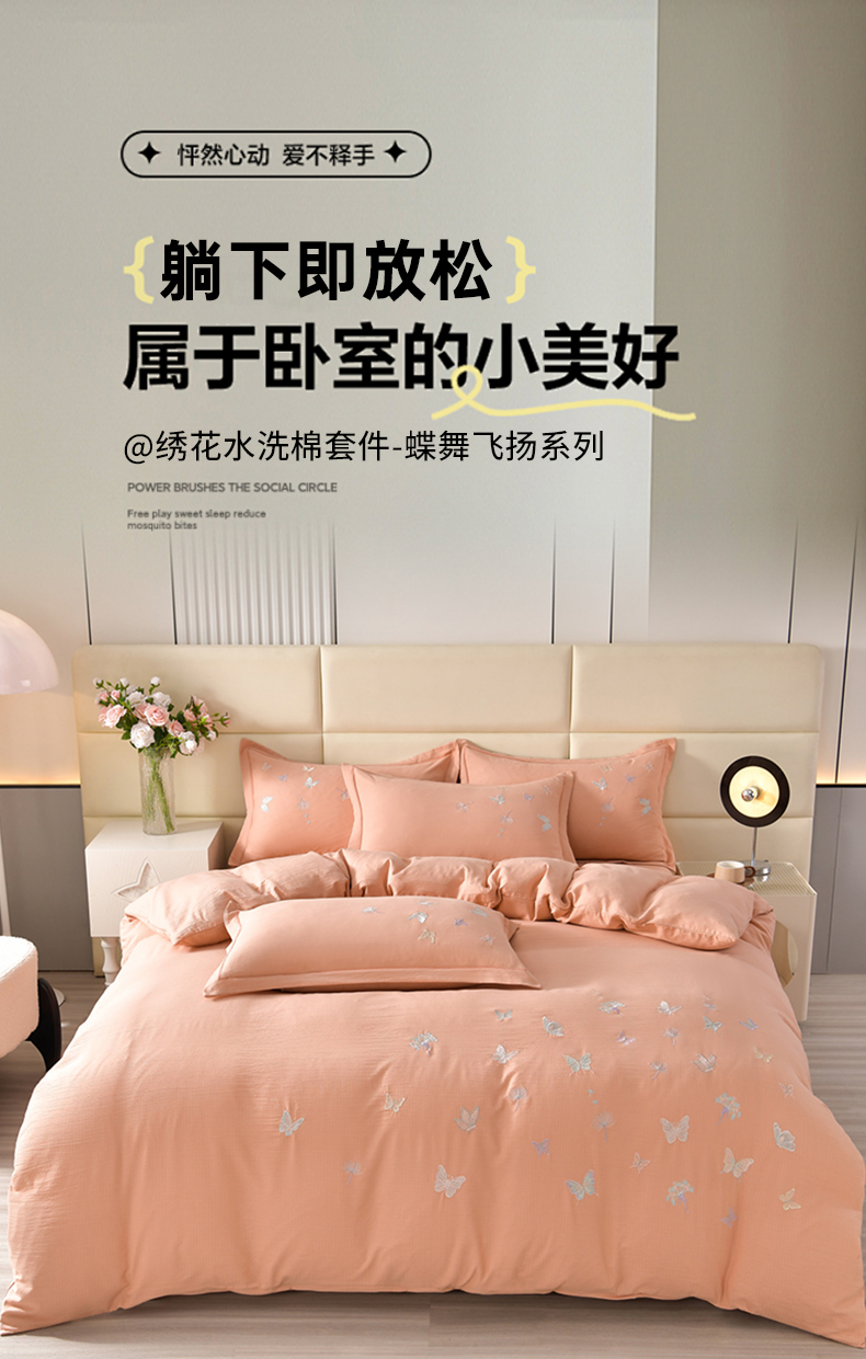 星窝2025新款绣花水洗棉套件-蝶舞飞扬系列 玉色