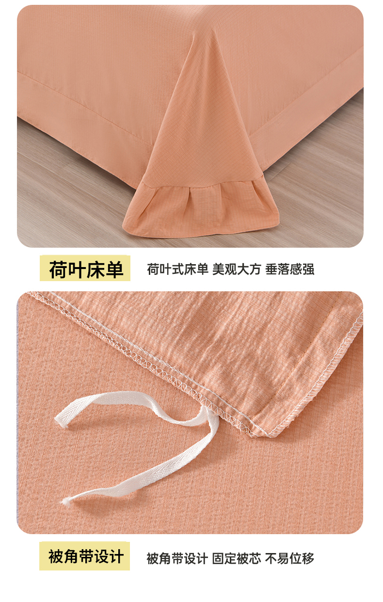 (总)星窝家纺 2025新款水洗棉花边床裙式多功能床盖三件套,经典豆绿,经典粉色,经典灰色,经典橘色,经典蓝色,经典奶白,经典紫色