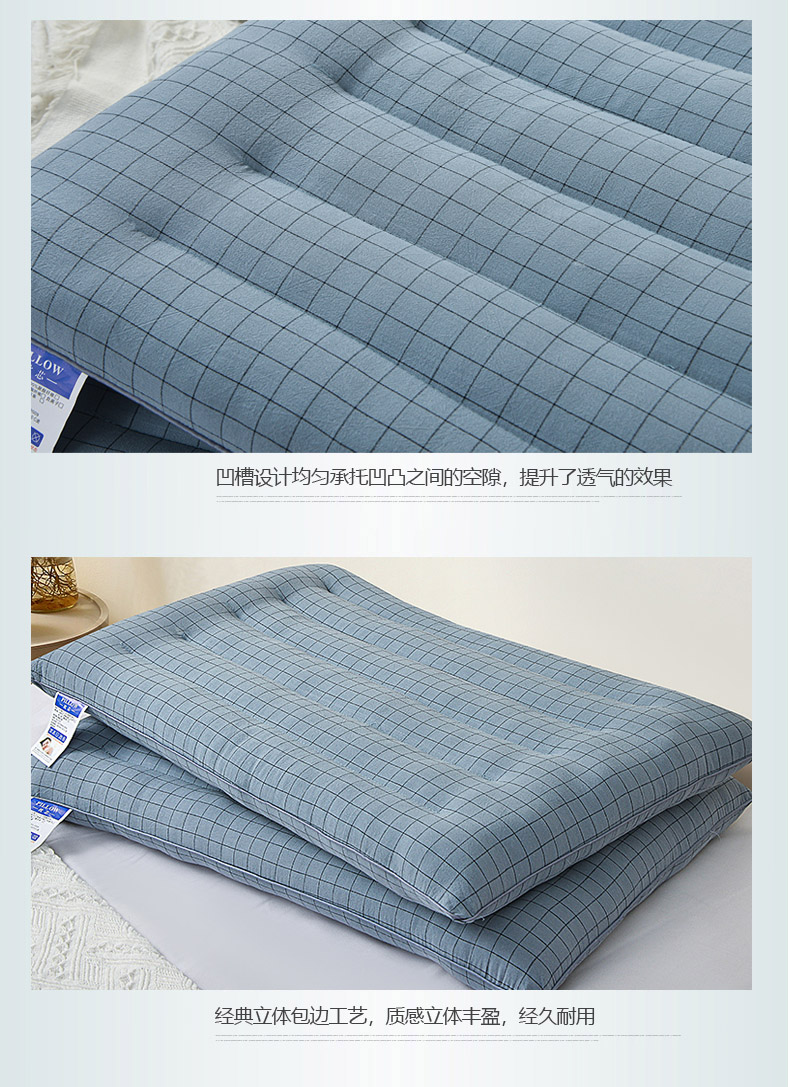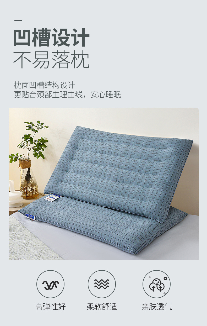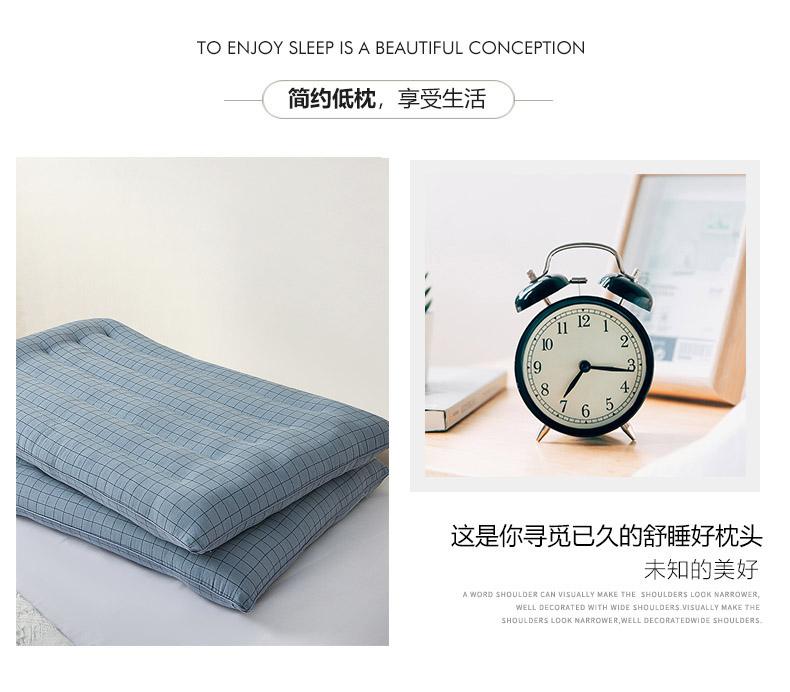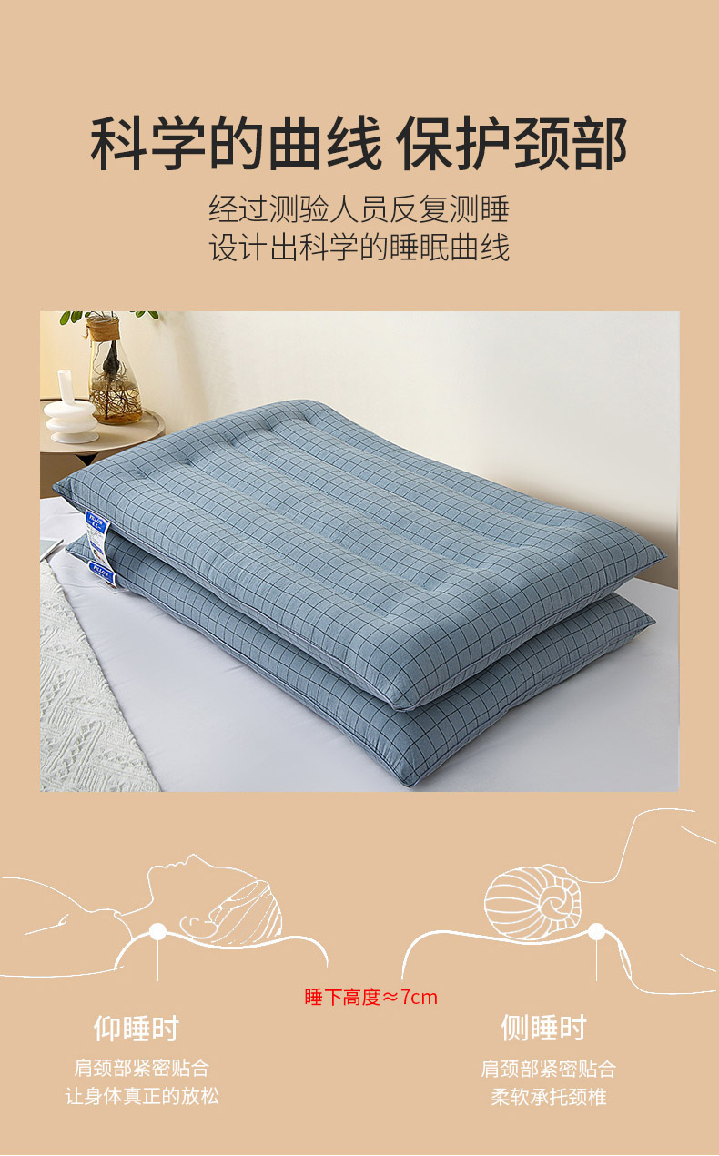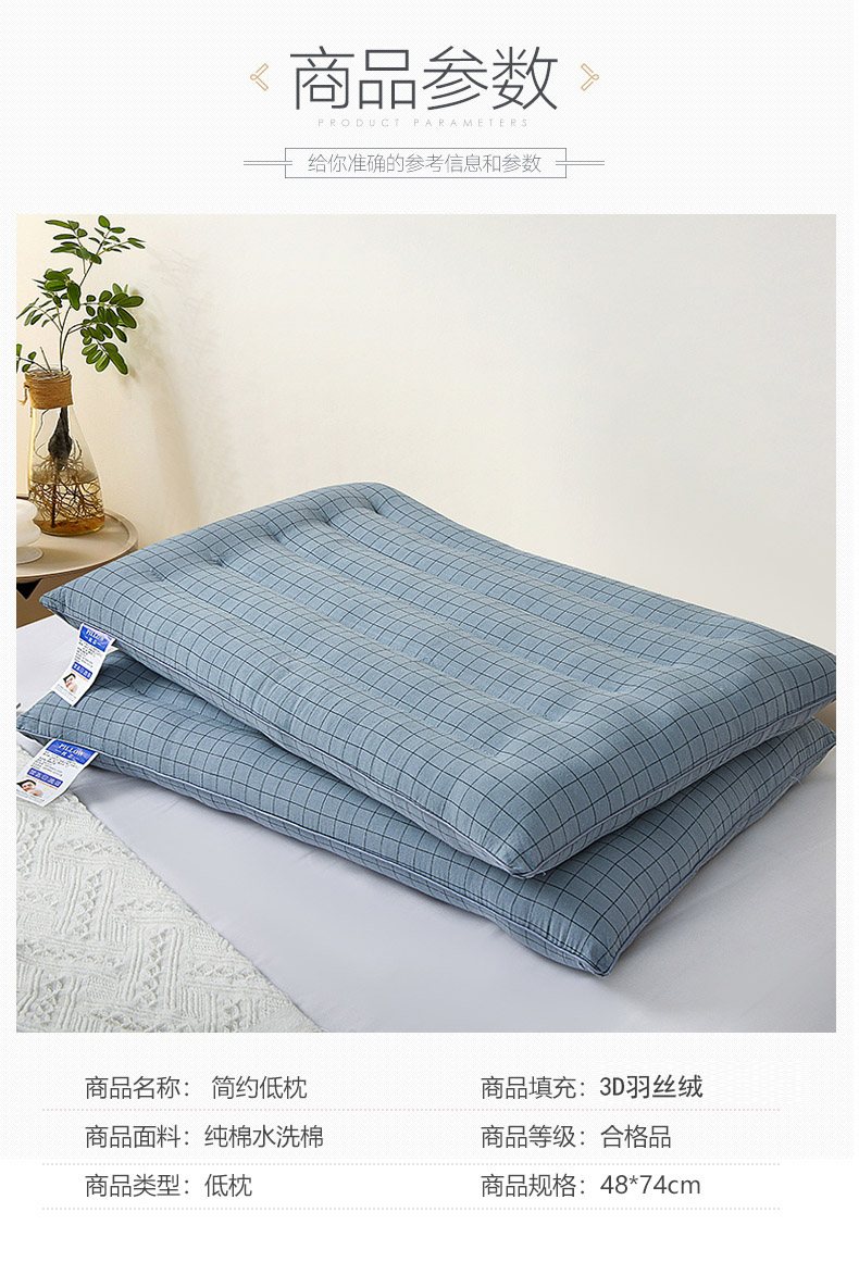 (总)全棉枕芯 水洗棉羽丝枕 全棉羽丝护颈枕 低平枕 成人枕芯 低枕 适合低枕人群