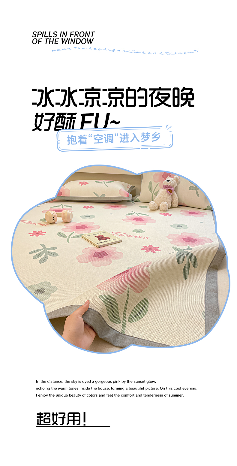 商品名称:逸尚阁 2025春夏新款数码印花冰藤席空调席三件套 叶子世界-平铺款