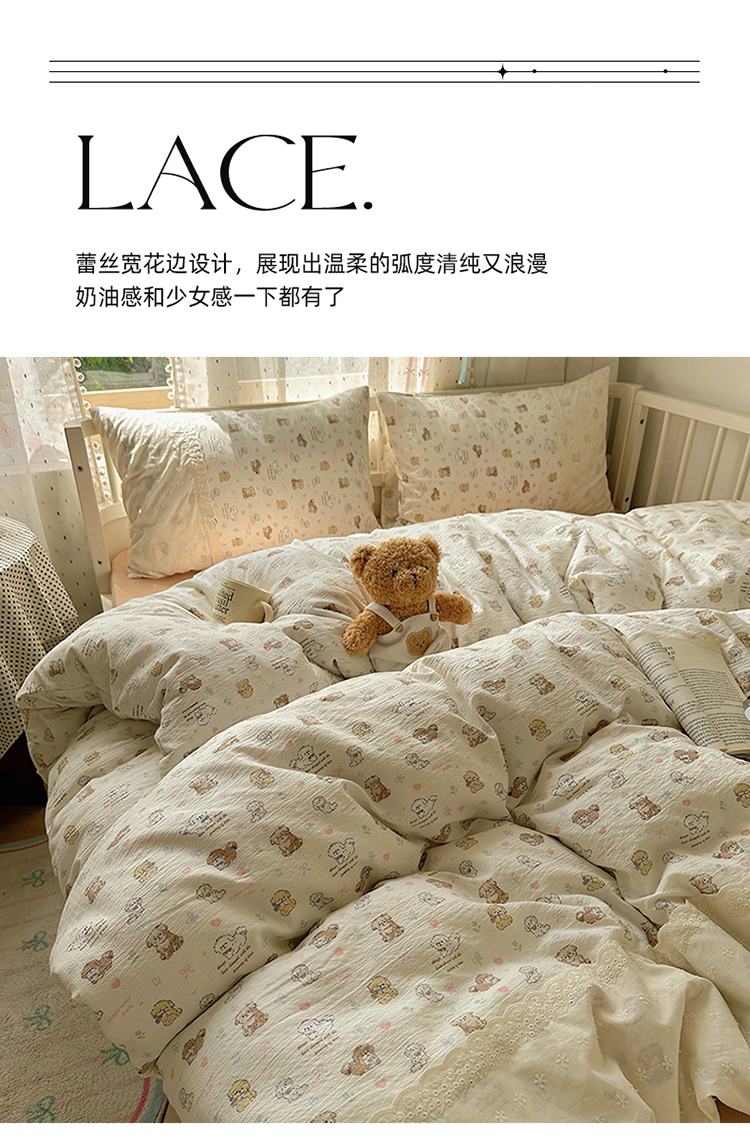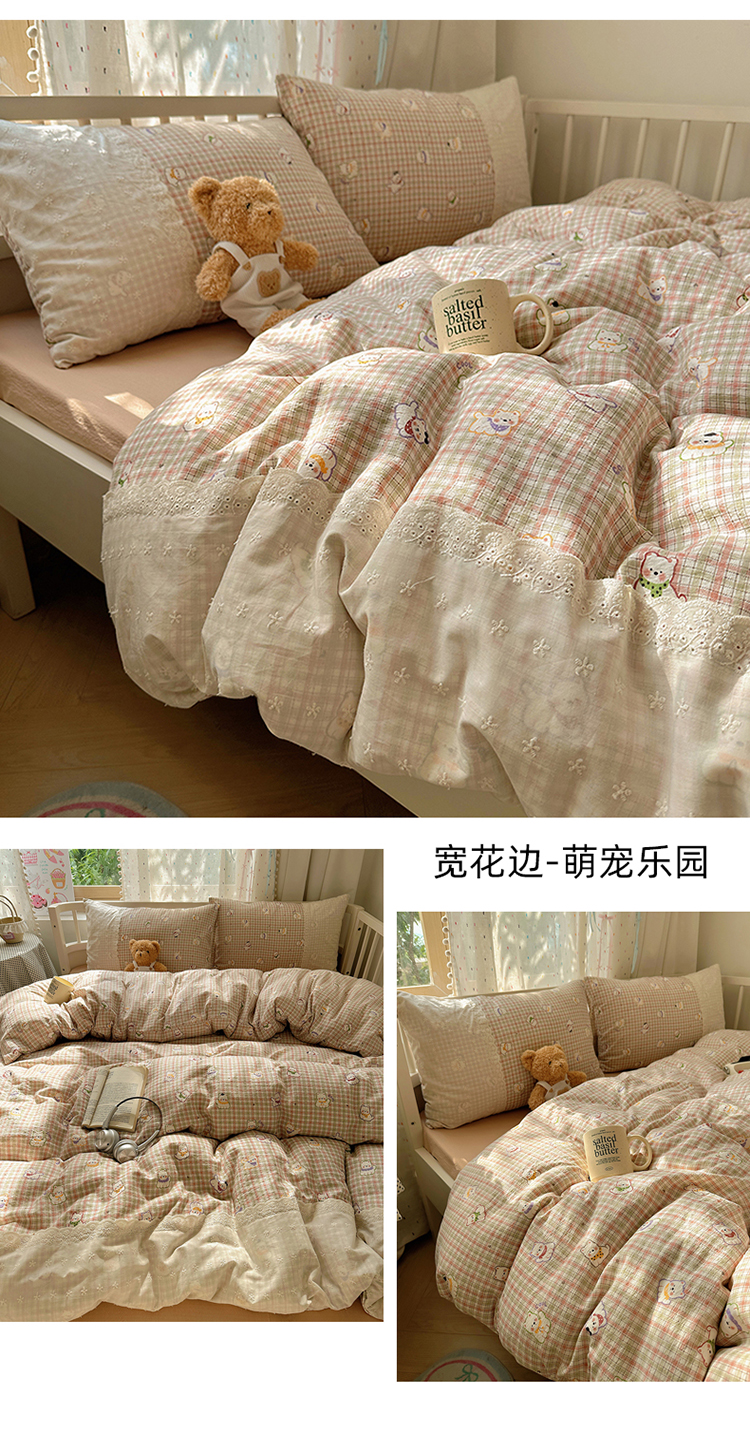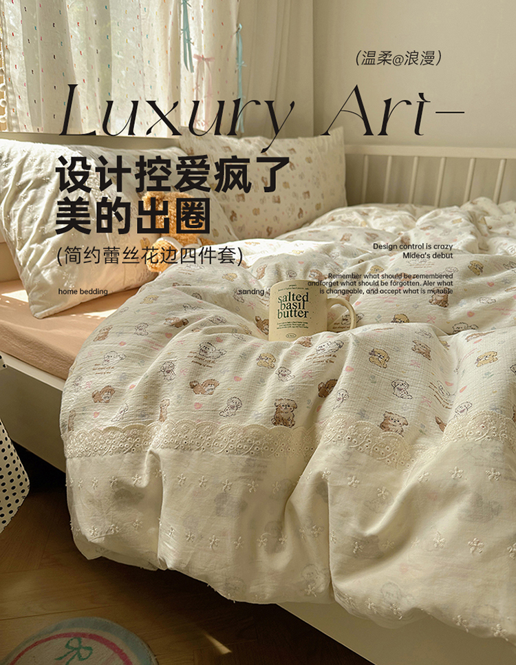 当前位置: 91家纺网 > 商品网购 > 床品套件 > 四件套 > 双层纱四件套 > 沐芷 2025 蕾丝花边A类木棉双层纱四件套公主风床单被套宿舍三件套少女心 宽花边-奶萌小狗