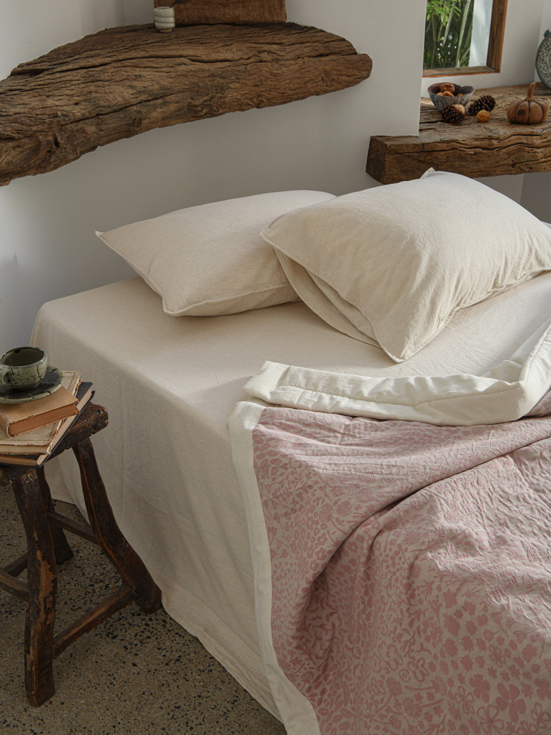 (总)简家居 2025新款亲肤舒适棉麻床盖三件套,棉麻提花