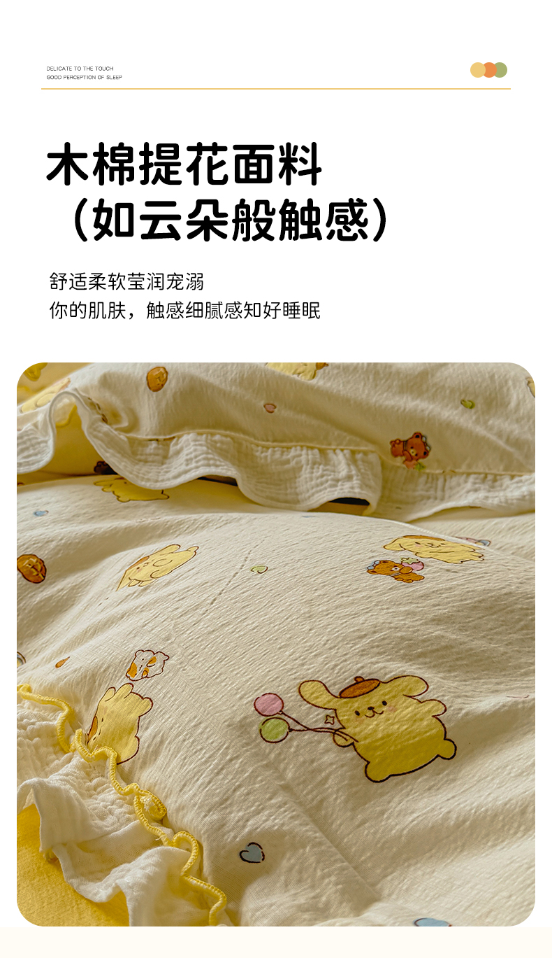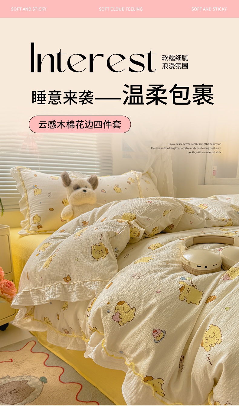 当前位置: 91家纺网 > 商品网购 > 床品套件 > 四件套 > 提花四件套 > 繁花家居 2025新款云感棉提花学生季超温柔小花边四件套 小狗布丁