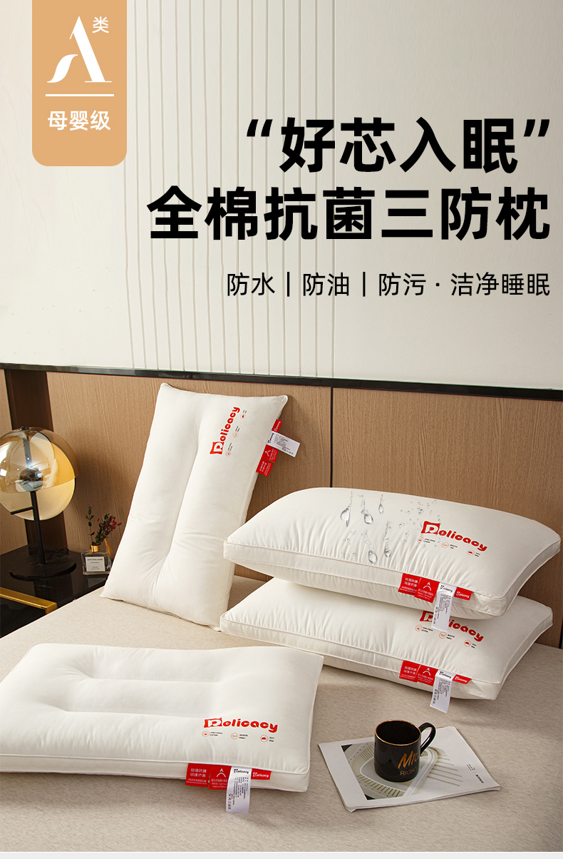 当前位置: 91家纺网 > 商品网购 > 枕头/枕芯/保健枕/颈椎枕 > 普通枕芯 > 织布人 2025新款枕芯A类全棉防水防油防污三防功能枕头家用护颈酒店枕芯 A类全棉三防枕-护颈中枕 一只装 48x74cm