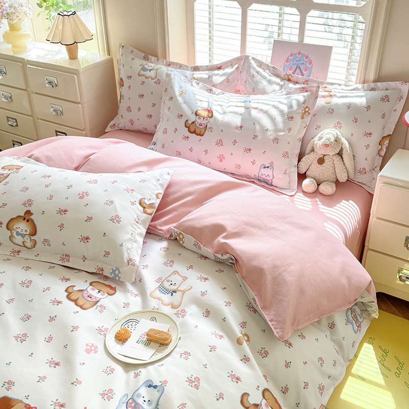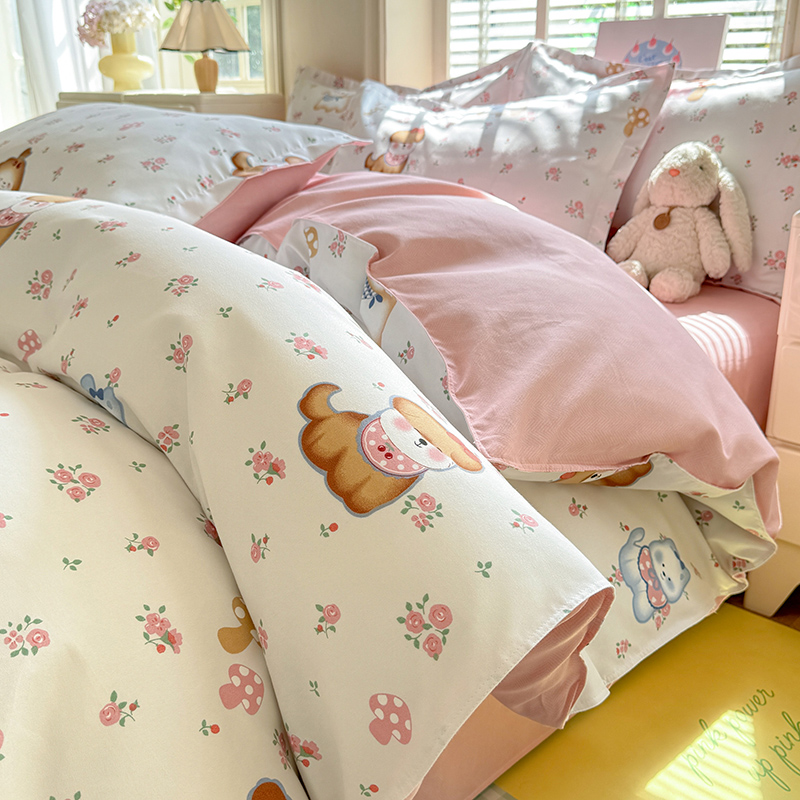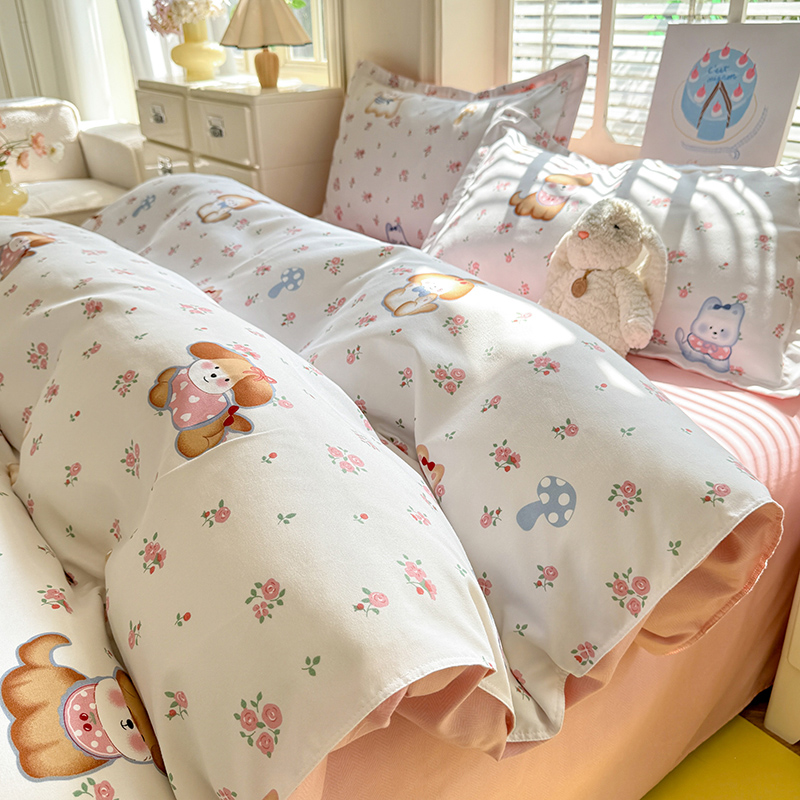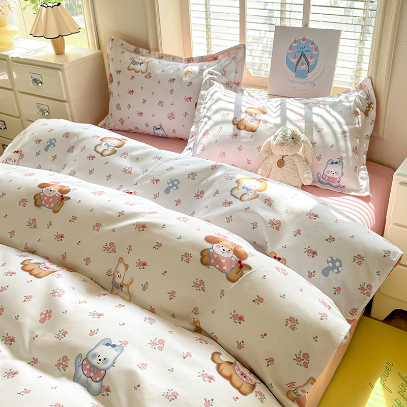 (总)优逸家纺 2025新款加厚磨毛小清新绣花四件套,草莓女孩,嗨皮狗,花千朵,嘻哈熊,仙人掌,心愿树,星辰兔,紫葡萄